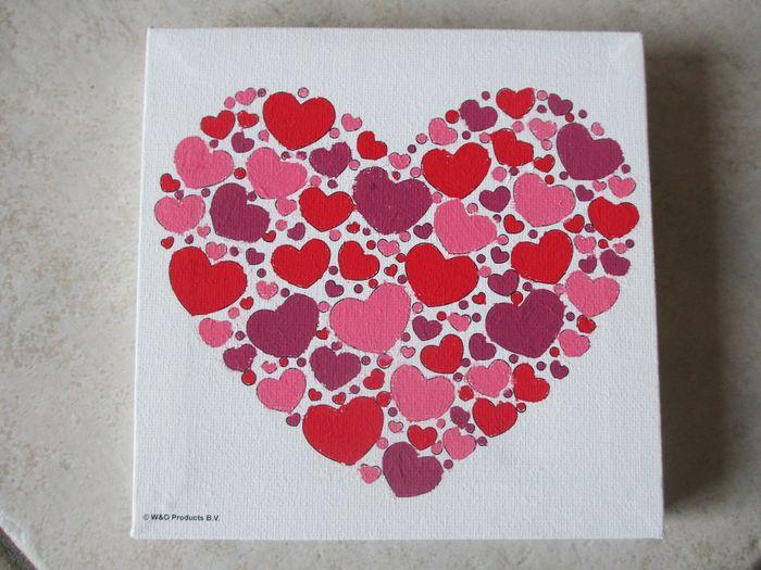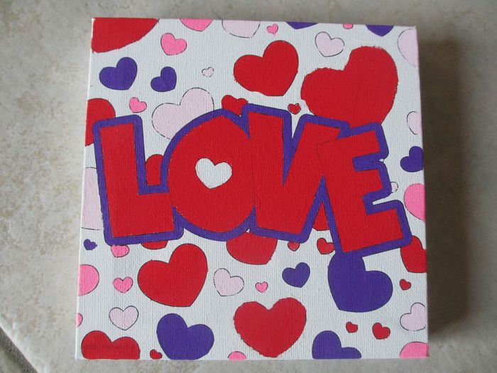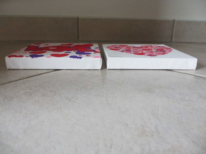 Lot de 2 petites toiles peintes à la main (Love et coeurs)