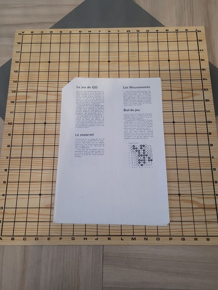 Plateau (Goban) : Grand plateau en bois clair de 19x19 lignes (format standard officiel). Marquages précis et lisibles avec les points de repère (Hoshi).