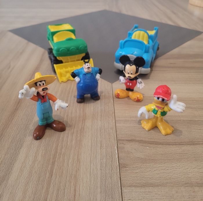 Vends un lot de jouets Disney comprenant 4 figurines emblématiques et 2 véhicules assortis. Parfait pour les jeunes enfants ou pour compléter une collection.