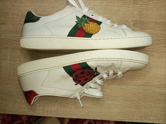 Gucci Ace : Baskets en cuir blanc brodées Ananas/Coccinelle - Taille 38.5