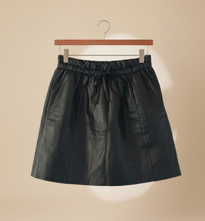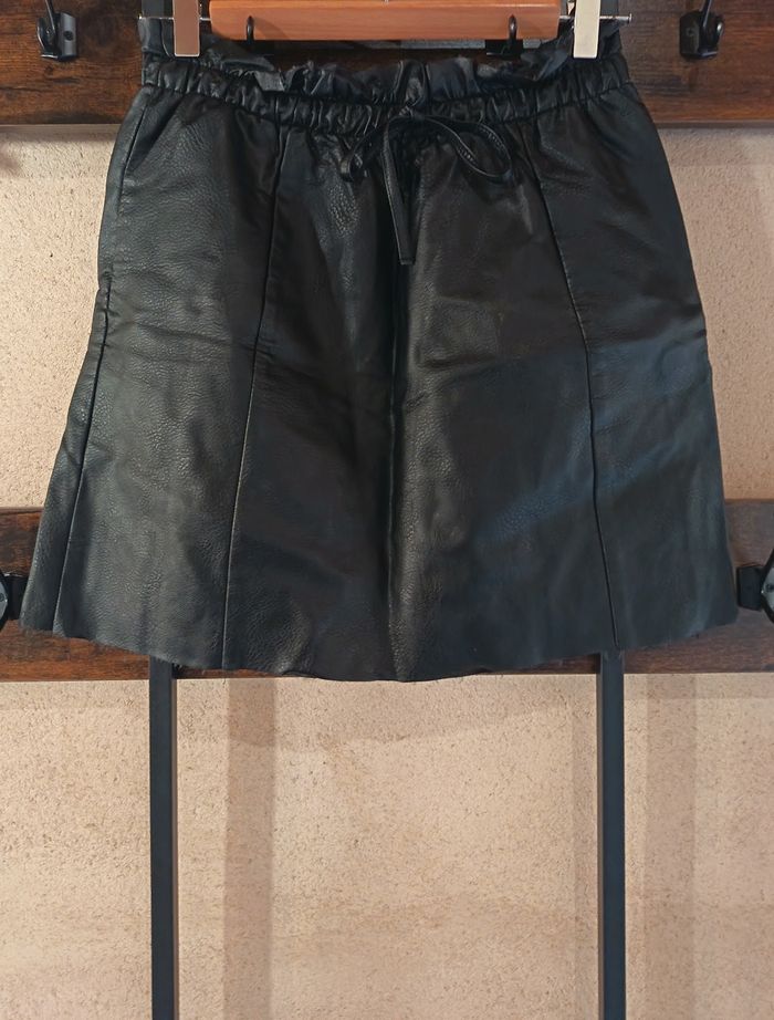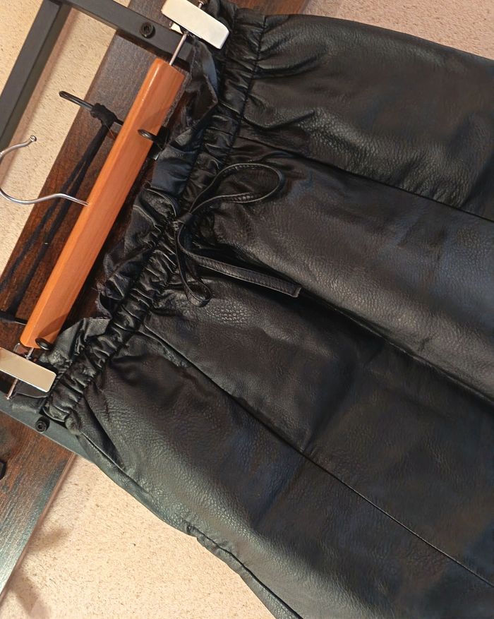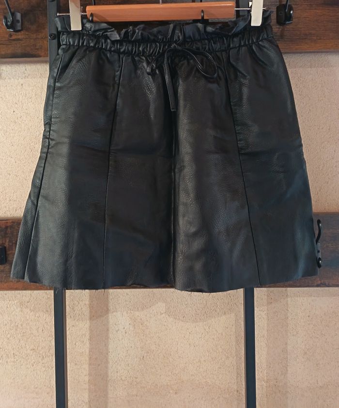 Craquez pour cette superbe jupe courte en simili cuir noir de chez Kiabi. Sa coupe fluide et sa taille élastiquée (style paperbag) assurent un confort absolu tout en marquant joliment la silhouette.