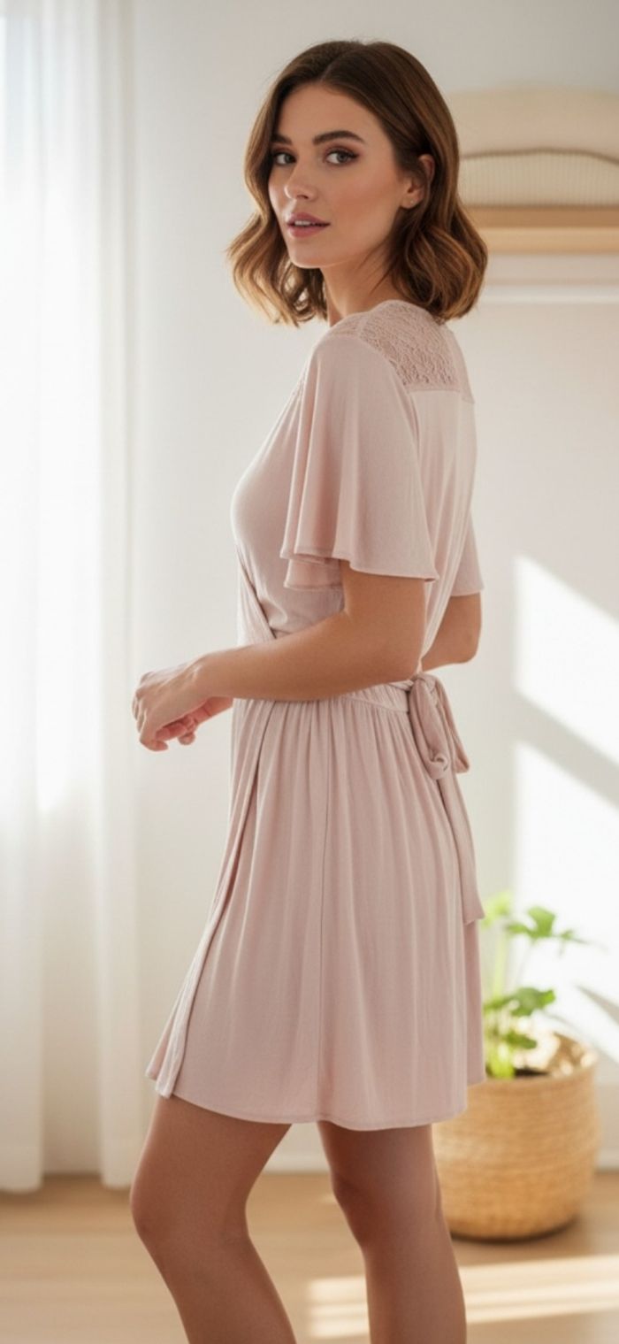 ✨Robe Cache-Cœur Romantique Rose Poudré✨