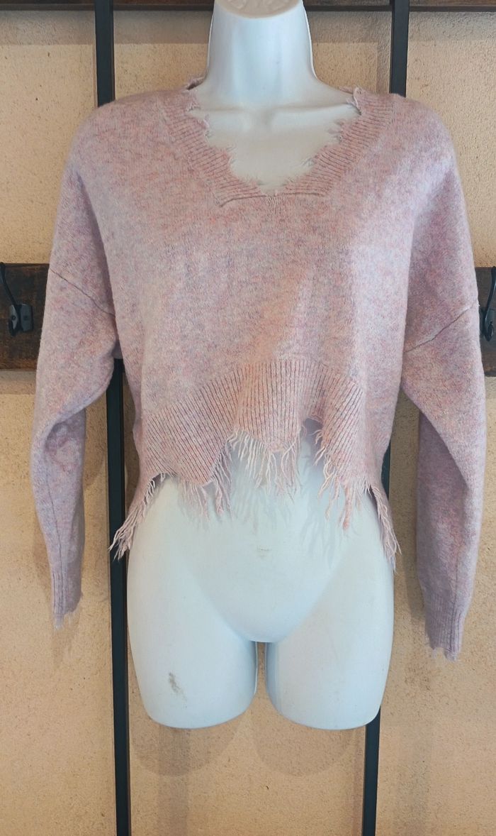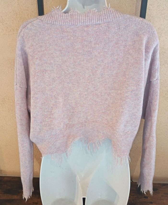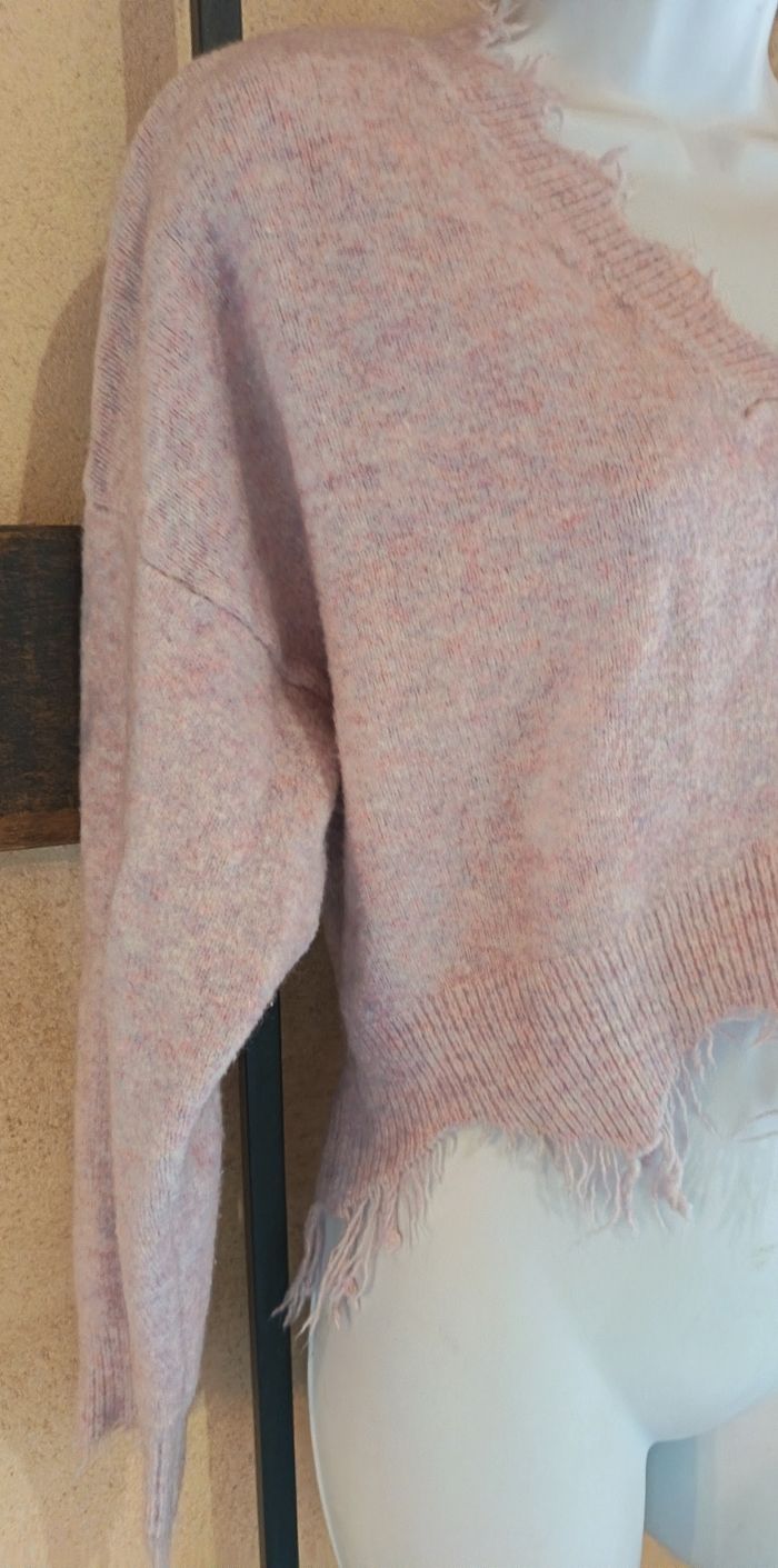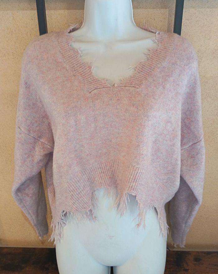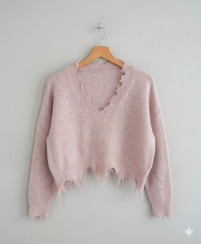 Détails : Col en V et bordures volontairement effilochées pour un look moderne et original.