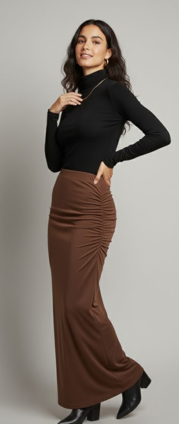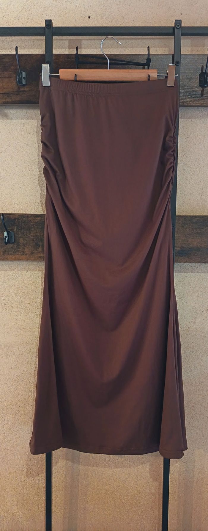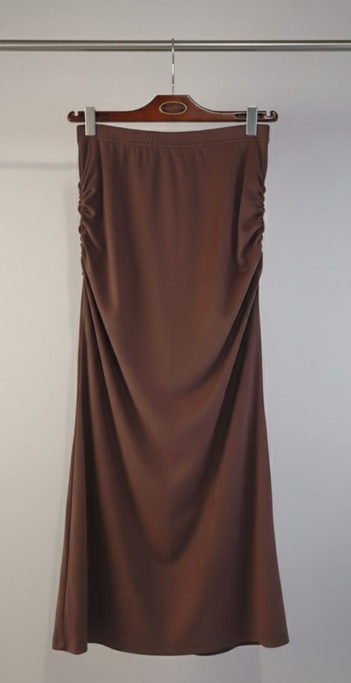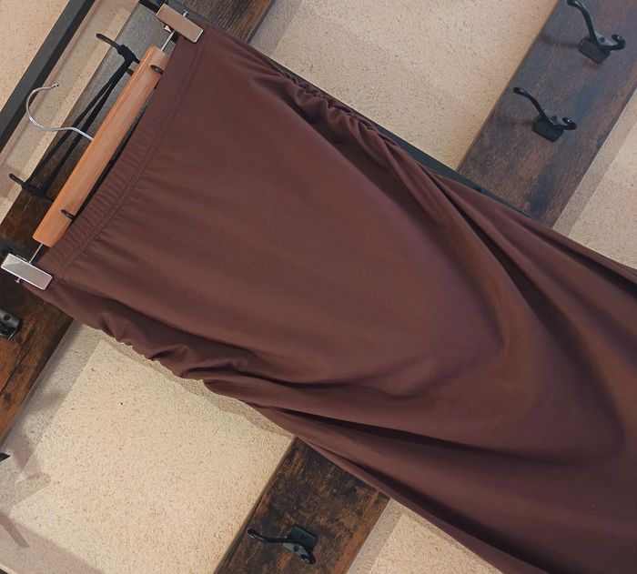 Magnifique jupe longue à l'aspect suédine (aspect daim), coloris marron chocolat.