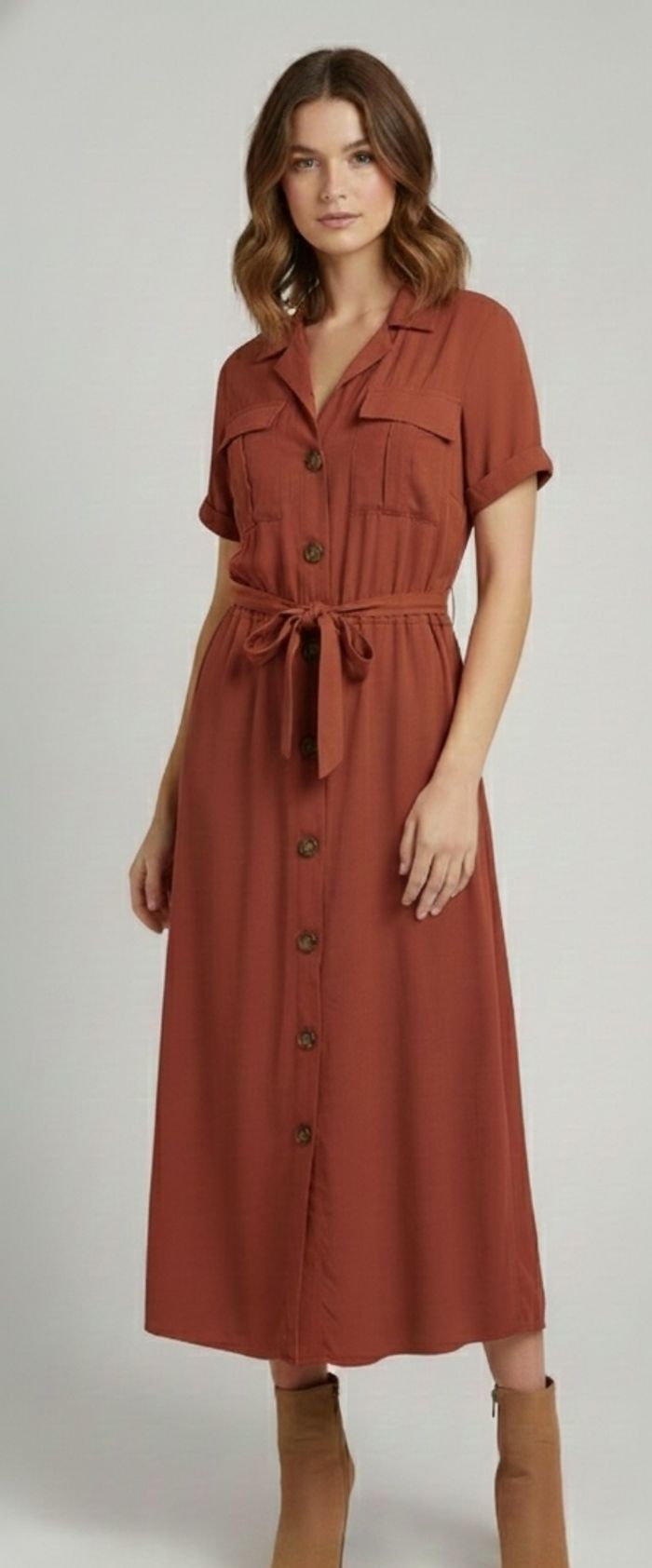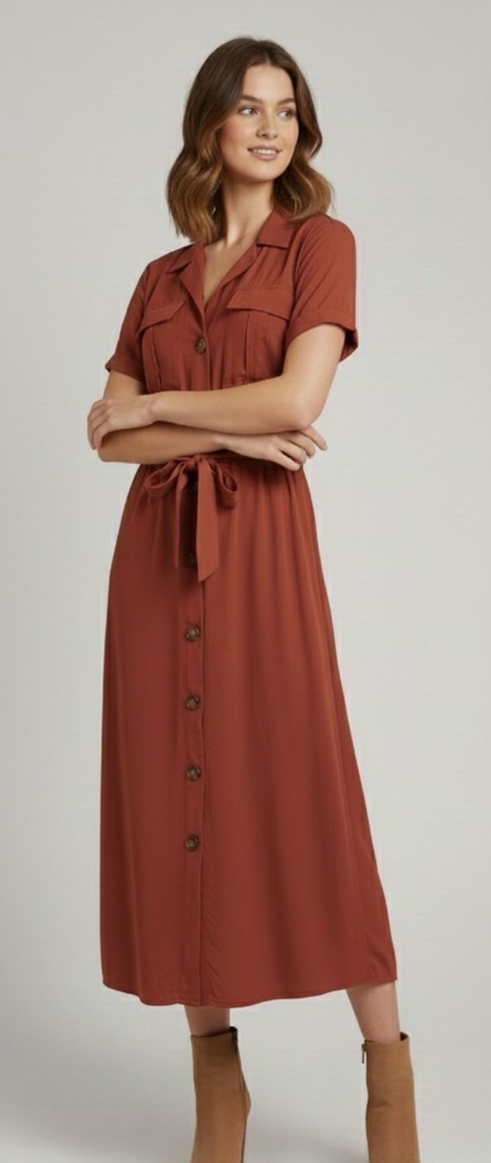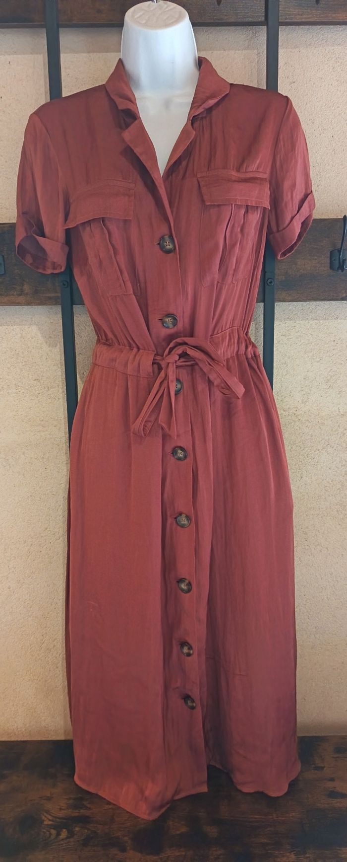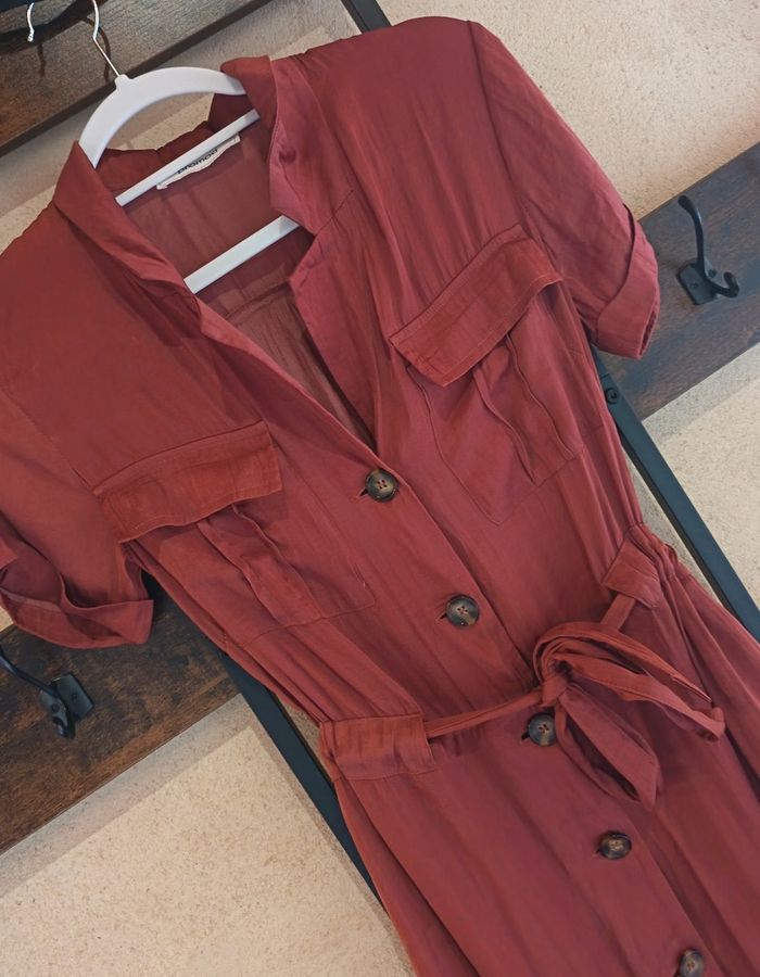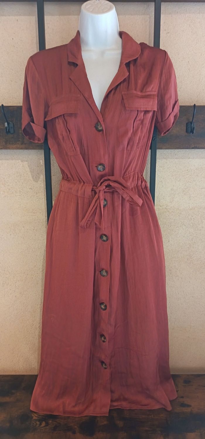Sublimez votre silhouette avec cette robe longue Promod couleur terracotta/rouille. Une coupe féminine et confortable, parfaite pour toutes les saisons !