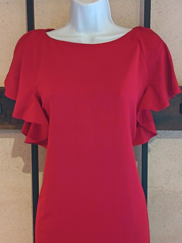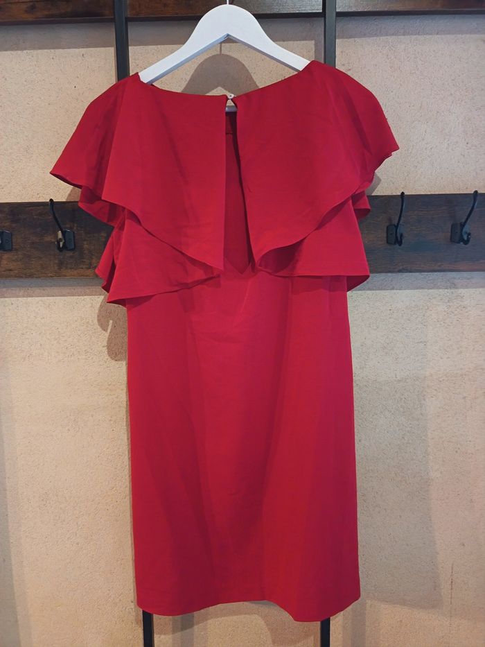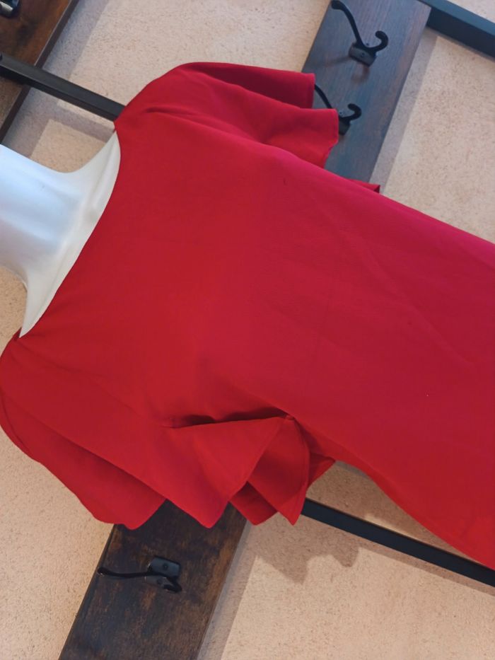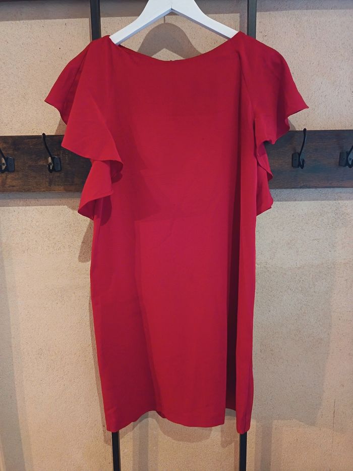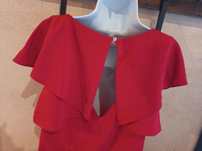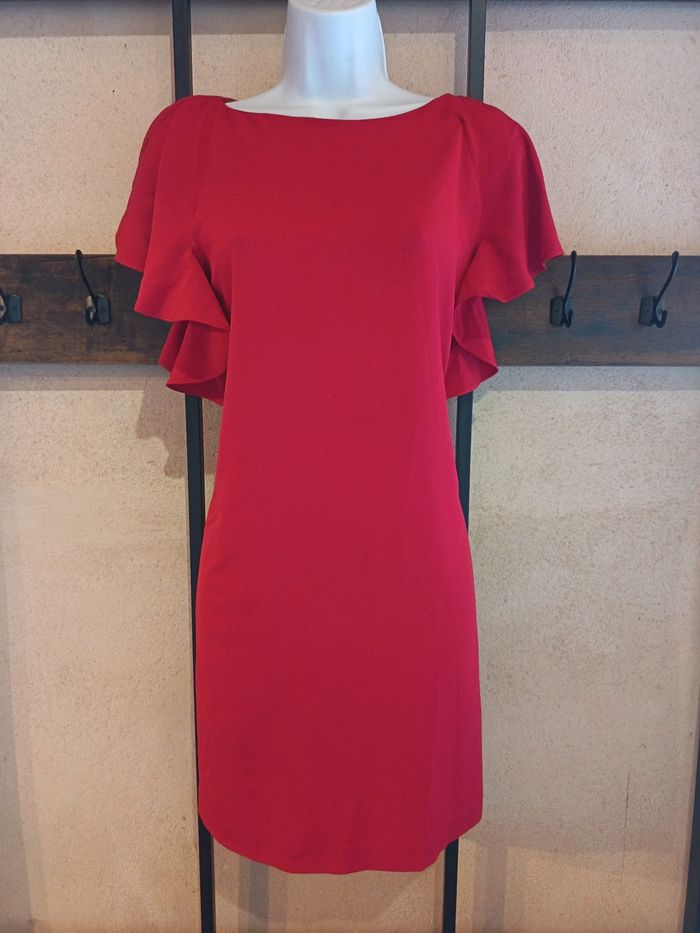 Sublimez votre silhouette avec cette robe Zara à la fois élégante et audacieuse. Sa coupe droite classique est rehaussée par des manches volantées spectaculaires et un dos nu en V raffiné, fermé par un délicat bouton nacré. Parfaite pour un mariage, une soirée ou un événement spécial.