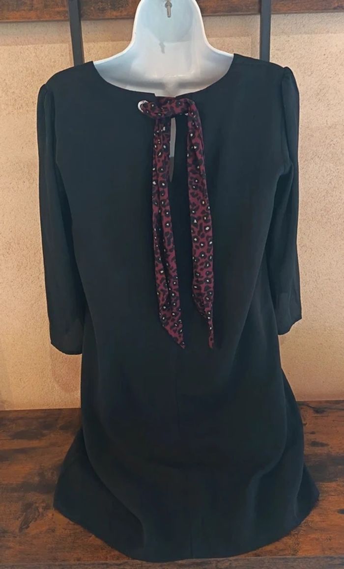 Détail chic au dos : un joli ruban aux motifs léopard/grenat qui apporte une touche d'élégance unique.