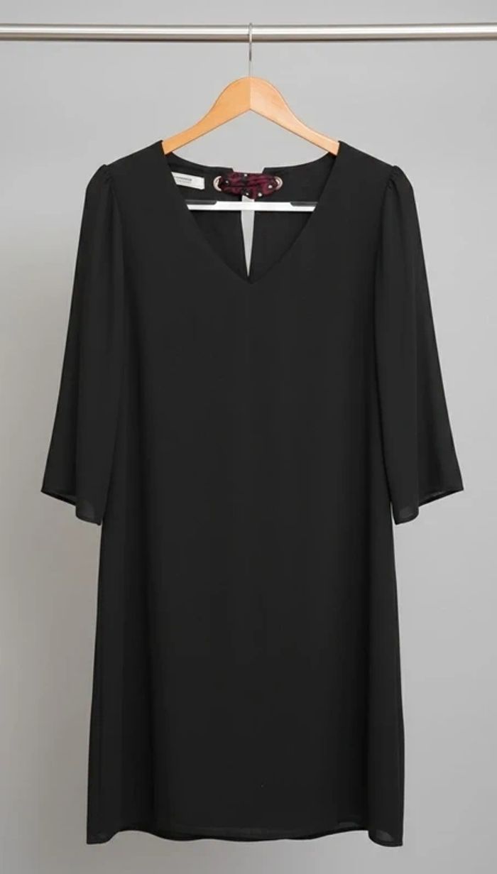 Superbe robe noire fluide de chez Promod, Elle se distingue par ses détails raffinés :