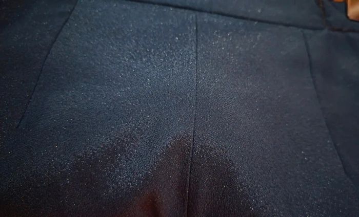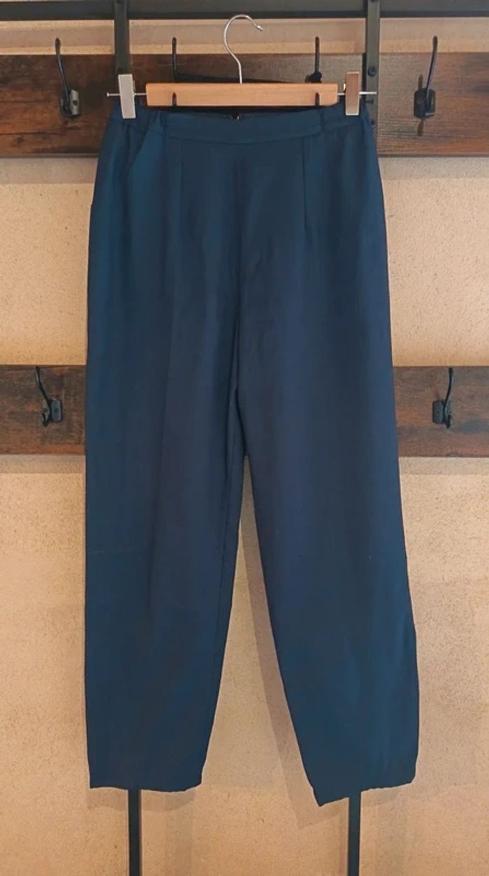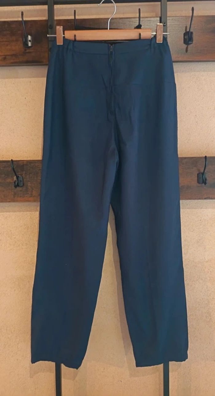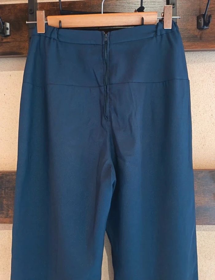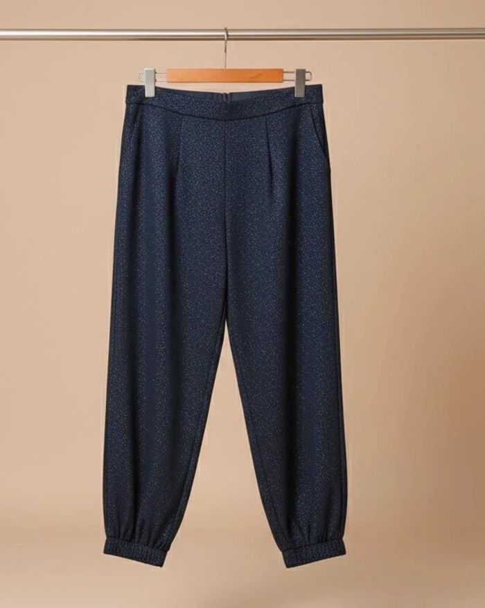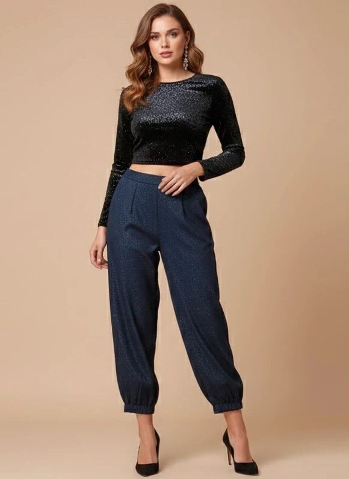 Sublime pantalon de soirée bleu marine avec de très fines paillettes discrètes (effet scintillant élégant).