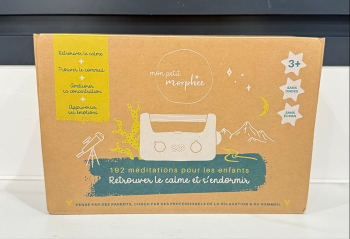 Procédé : Petit appareil déconnecté, sans ondes et sans écran, contenant plus de 200 séances de méditations. Il est équipée de 3 clés de sélections et de plusieurs commandes pour gérer le volume, choisir la voix et lancez la séance de méditation.
