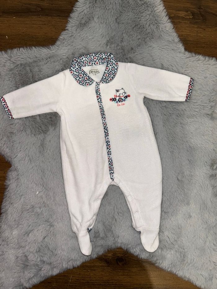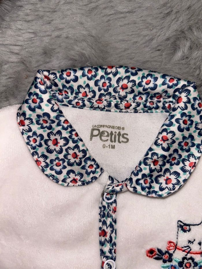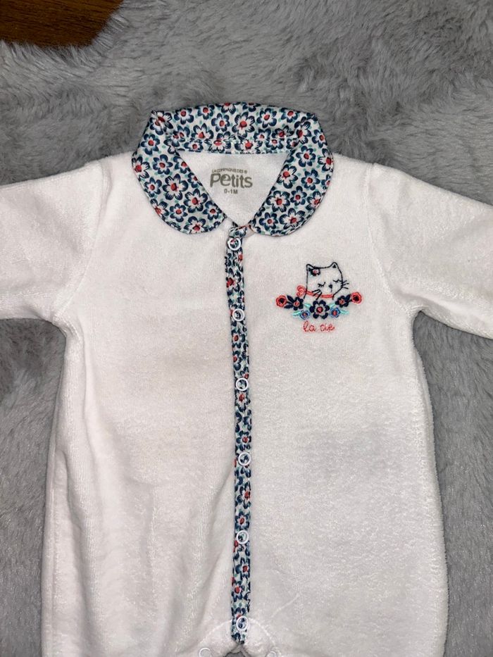 Pyjama blanc motifs florale et chaton - 1 mois - La compagnie des petits