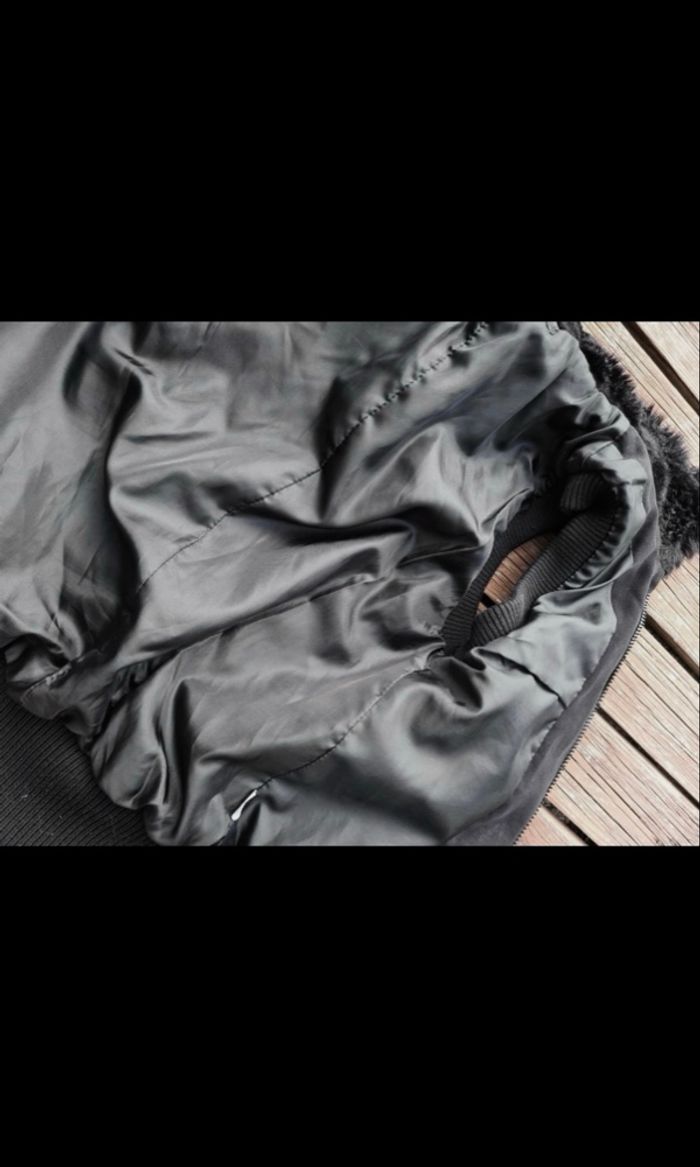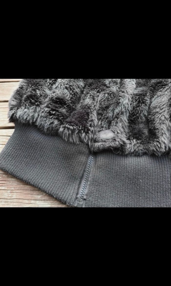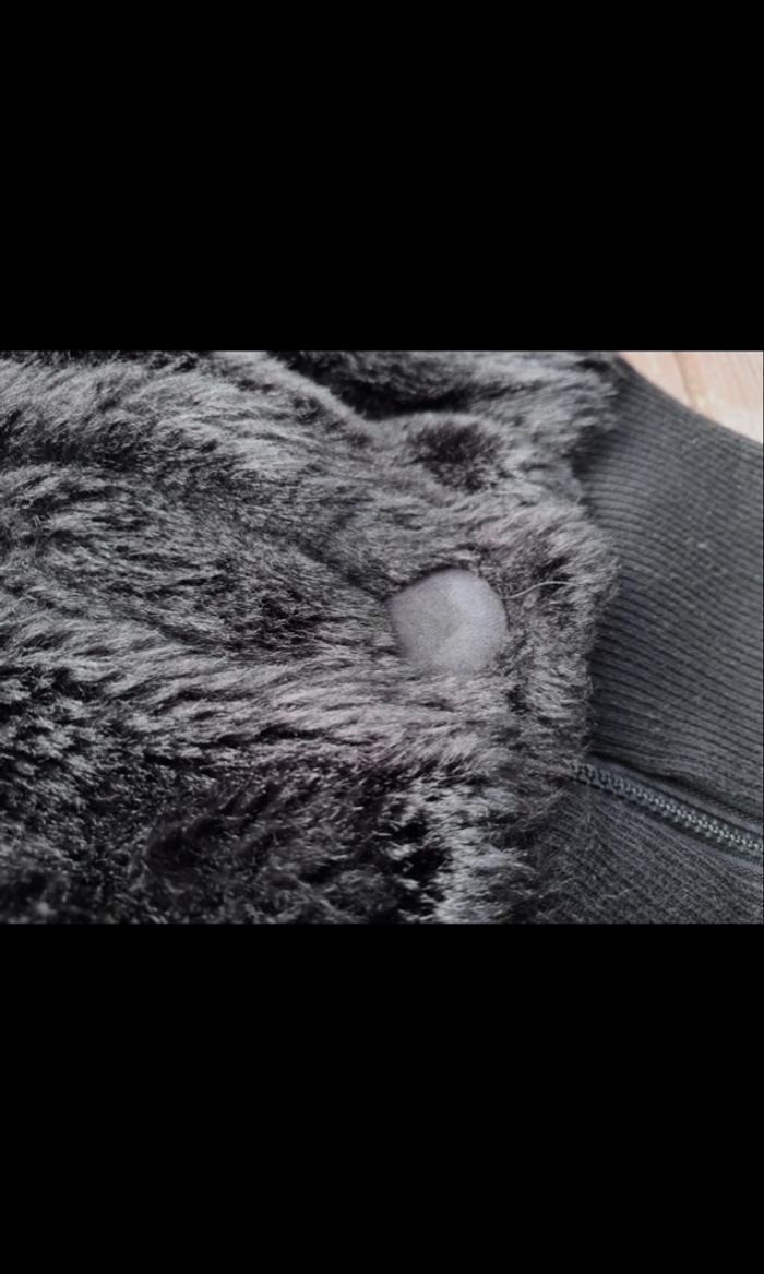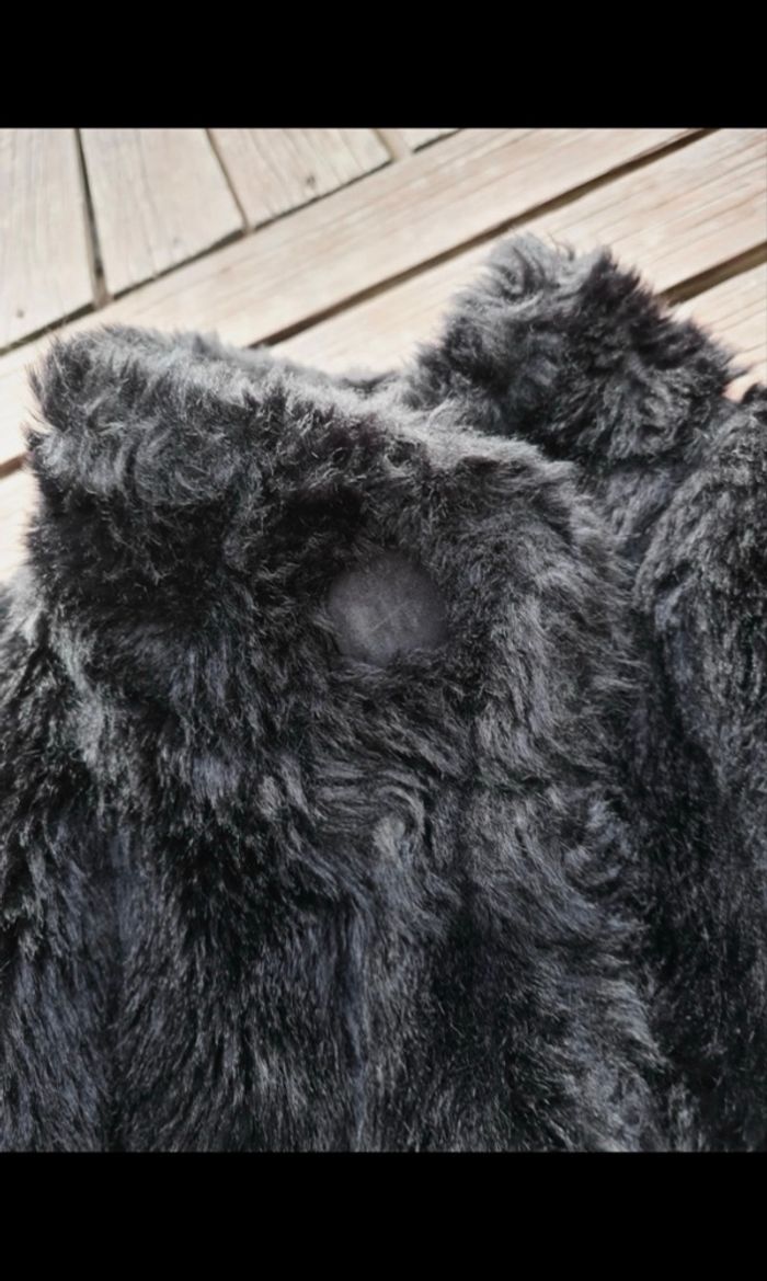 Veste sans manches fausse fourrure noire Deux poches plaquées latérales Col rond montant Fermeture par glissière et deux gros boutons Finitions bords côtes Toute doublée