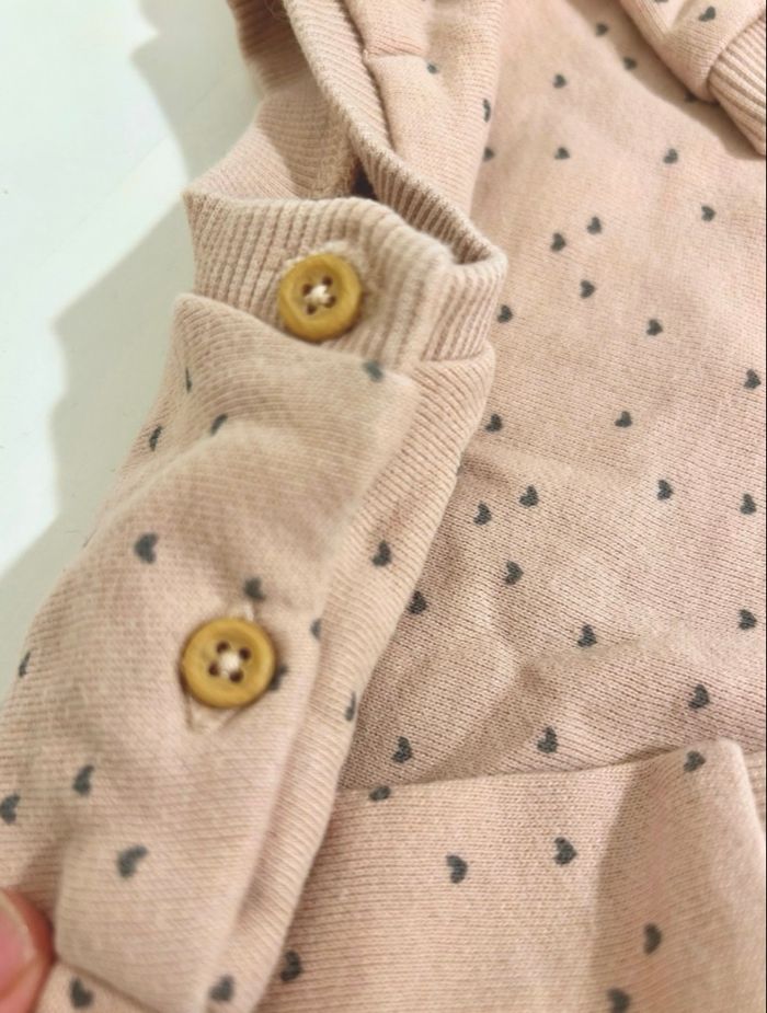 Marque : Bout'chou Taille : 6 mois Couleur : Rose poudré avec un imprimé petits cœurs gris anthracite Matière : Maille douce et confortable, idéale pour la peau de bébé Détails charmants : Fermeture par deux jolis boutons façon bois sur l'épaule pour faciliter le passage de la tête. Finitions bords-côtes au col, aux poignets et à la base. État : Très bon état. Bien entretenu, pas de taches ni de bouloches. Un basique chic et craquant qui s'accorde facilement avec un petit jean ou un legging. D’autres articles bébé disponibles dans mon dressing #boutchou #monoprixbebe #pullbebe #6mois #rosepoudre #bebefille #modeenfant #chic #basiquebebe #videdressingbebe #tenuemichemin #boutchouaddict #maillbebe