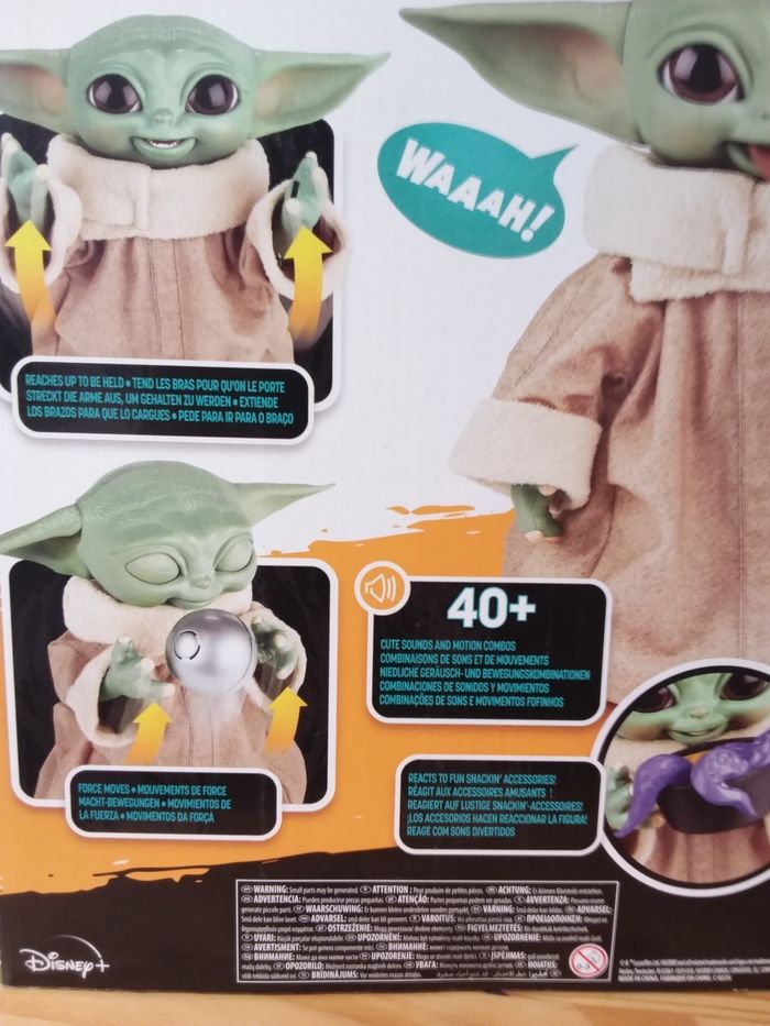 GALACTIC SNACKIN GROGU FIGURINE INTERACTIVE STAR WARS THE MANDALORIAN - 23CM Jouet HASBRO Disney Neuf, dans son emballage d'origine Fonctions: Il fait des mouvement de force, Tend les bras pour qu'on le porte, Combinaison de son et de mouvement, et Réagit aux accessoires. Envoie rapide et soigné. Prix pour l'unité. 2 pièces disponibles.