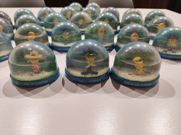 Lot de 31 Boules à Neige Titi Autour du Monde Voir photos pour état. Un tite n'est pas debout, un autre a la tête tombée.