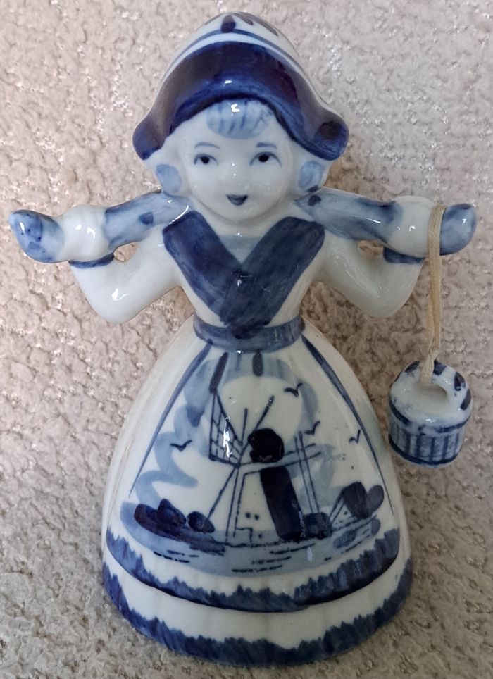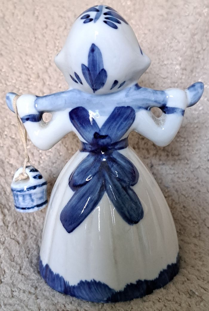 🗿 Statuette (clochette) en céramique, représentant une porteuse d'eau – Hand painting Delft Blue Colour, mesurant 12cm de haut