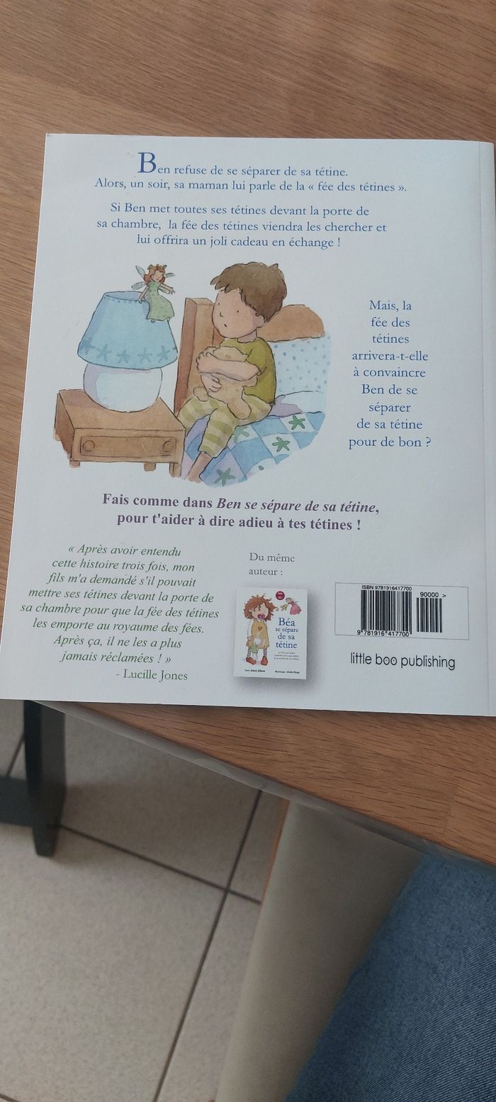 Ce livre raconte l'histoire d'un petit garçon qui s'appelle Ben et qui refuse de se séparer de sa tétine. Puis, un soir, sa mère le persuade de laisser toutes ses tétines devant la porte de sa chambre pour que la « fée des tétines » puisse venir les chercher - (et lui offrir un joli cadeau en échange !). Ben fait la connaissance de la fée, qui lui montre qu'il EST possible de se séparer de sa tétine sans verser la moindre larme.