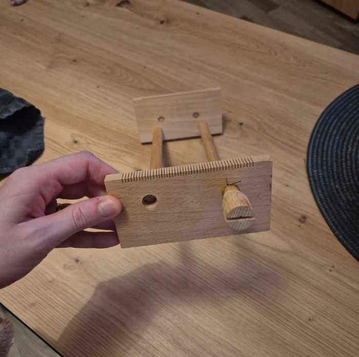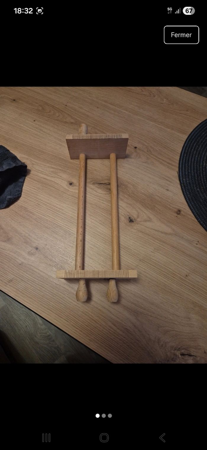 Metier a tisser les perles en bois En tbe general manque juste un embout mais peut etre utilisé ce n est pas genant pour mettre les fils. 2 embouts sont collés pour ne pas qu ils bougent