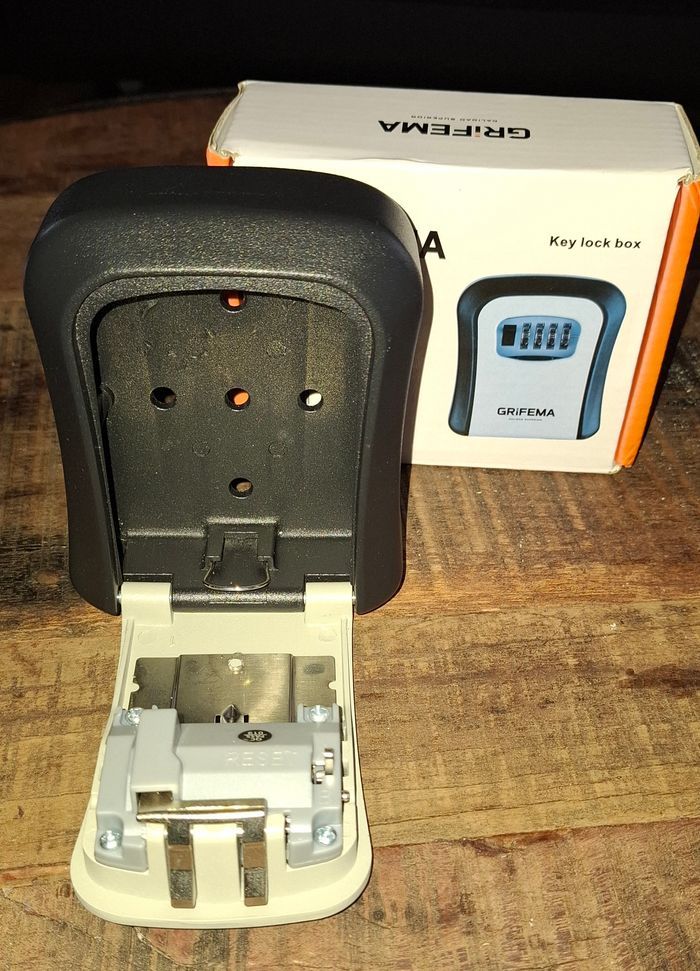 boîte à clefs GRIFEMA en métal, dimensions : profondeur 95mm, largeur 40 mm et hauteur 115 mm, très bon état, peu servi GRAND ESPACE - La boite à clé sécurisée extérieur peut contenir 5 clés + 1 carte HAUTE SÉCURITÉ - Une serrure à combinaison à 4 chiffres avec 10 000 combinaisons est dix fois plus difficile à ouvrir qu'une serrure à combinaison à 3 chiffres. ROBUSTE-- poids net 277g. boite à clef en alliage de zinc, résistante aux intempéries, au gel et ne rouille pas, résistante au martelage, au sciage.