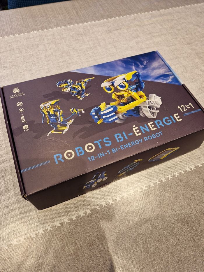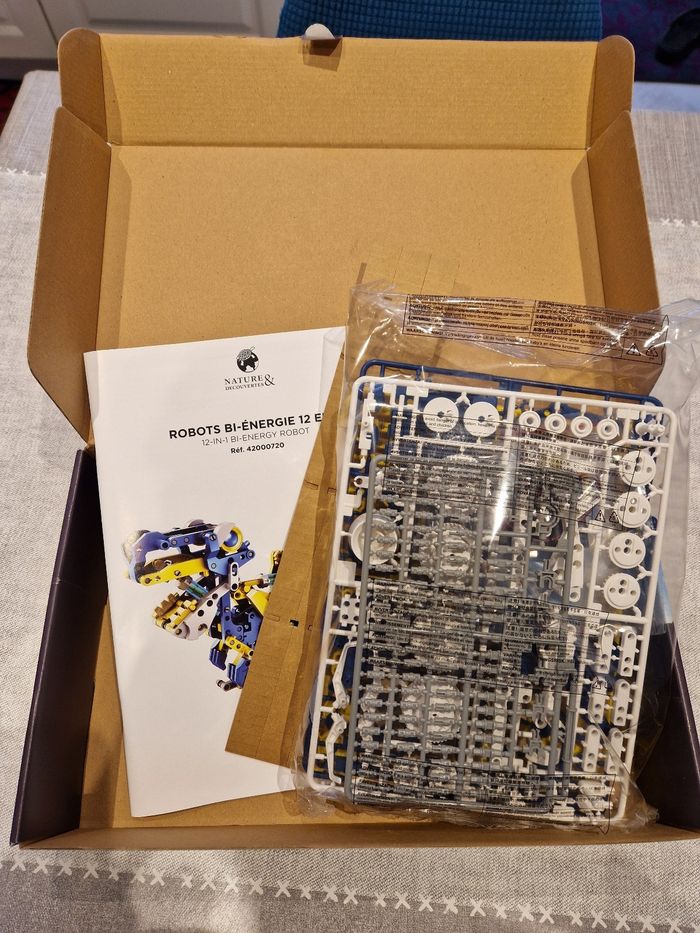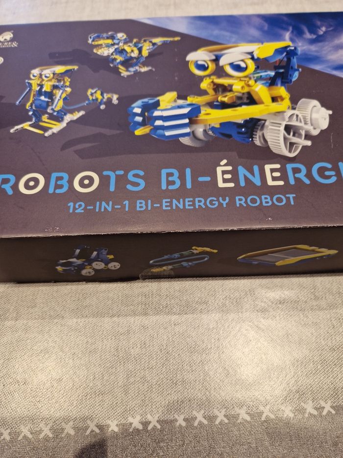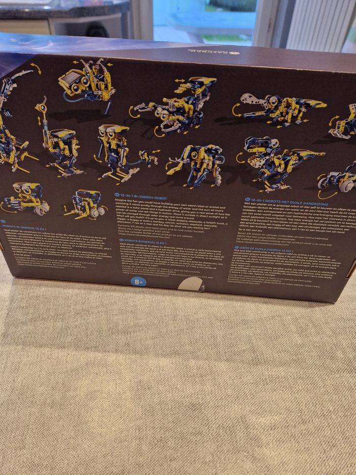 "Quel plaisir de construire toi-même ton drôle de robot ou d’animal et de le voir s’élancer uniquement grâce à l’énergie de l’eau et du soleil ! Pour cela, deux astuces : un panneau solaire et une transmission hydraulique, qui permet de comprendre concrètement la puissance de l’eau dans le déclenchement du mouvement. Plus il sera placé à la lumière directe, en extérieur notamment, plus il chargera également de l’énergie pour se déplacer.12 modèles ! Un robot évitant les obstacles, un chariot élévateur, une excavatrice, un buggy ou encore un singe, une autruche, un scorpion, un éléphant, un crocodile, un ptérosaure, un T-rex et un duo maître et chien.Contient 231 pièces en plastique et métal et un livret d’instructions.