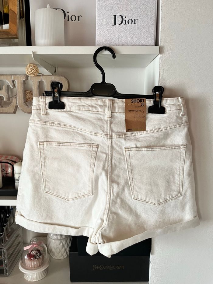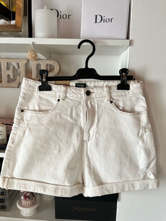 〰️ Short en jean, taille haute, blanc, idéal pour l'été