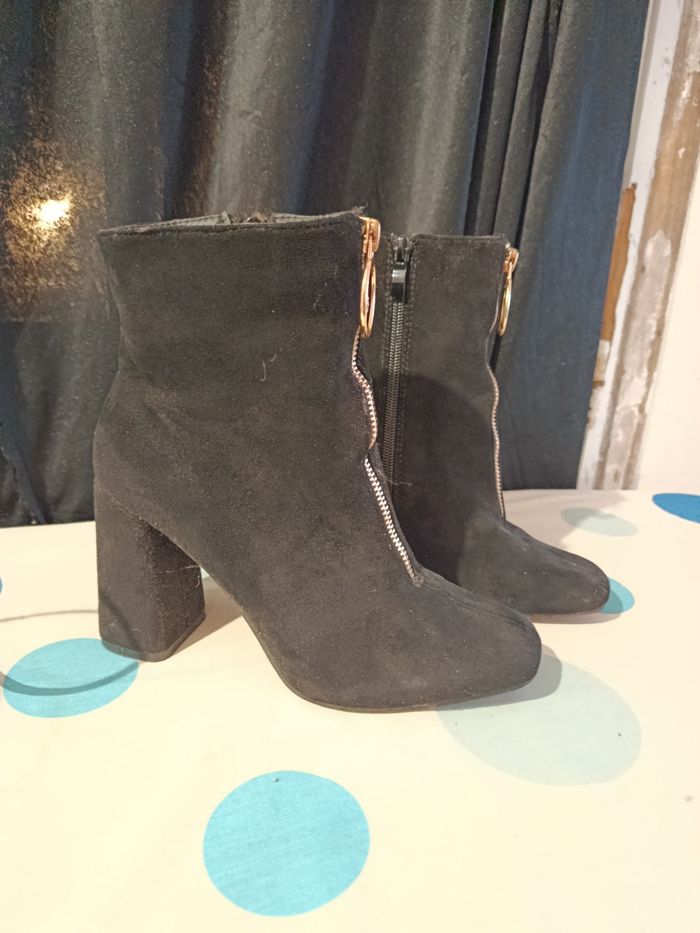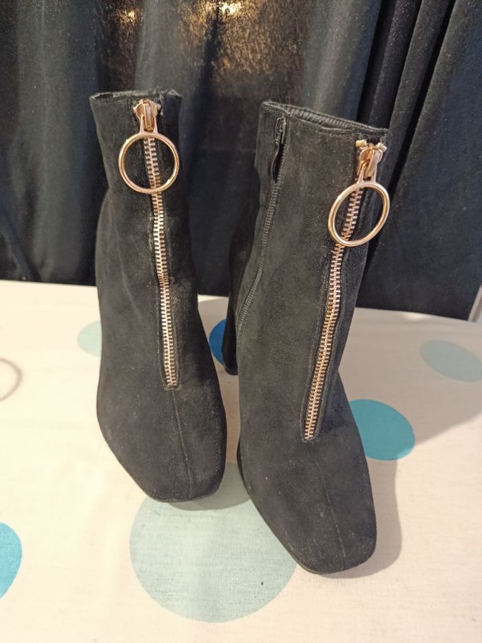 Paire de bottines noires en suédine (aspect daim), au style élégant et moderne.