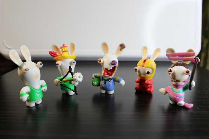 1 lapin crétin saxo : Mc donald 2010 : 10.5 cm. Fonctionne à pile, non testé