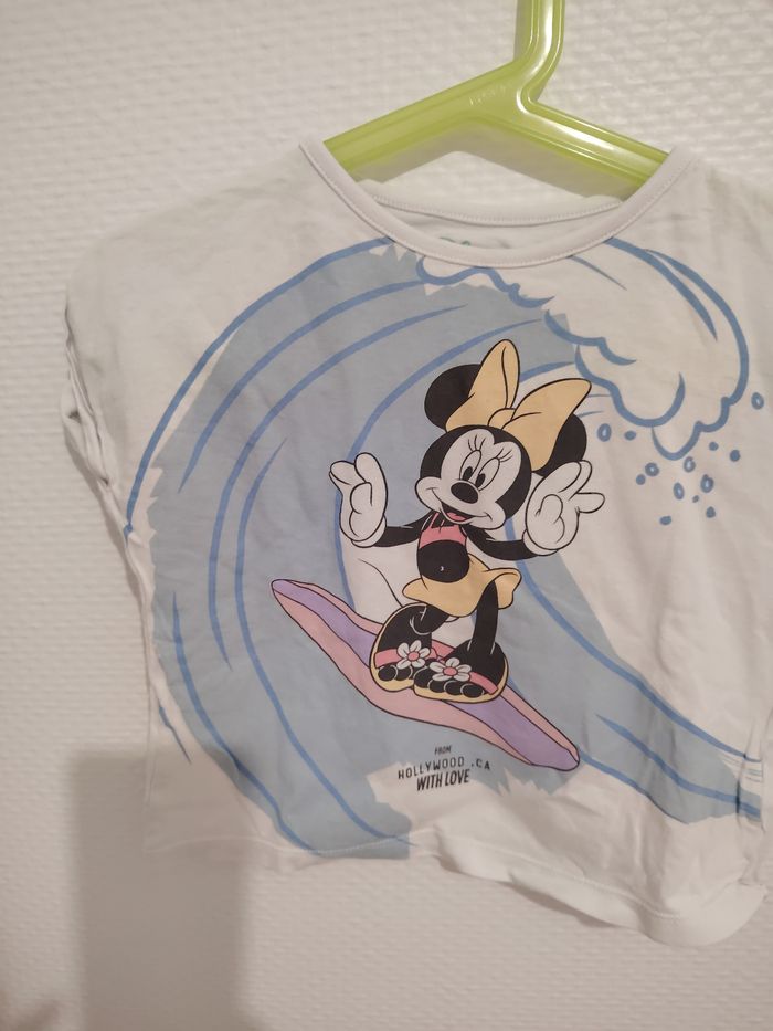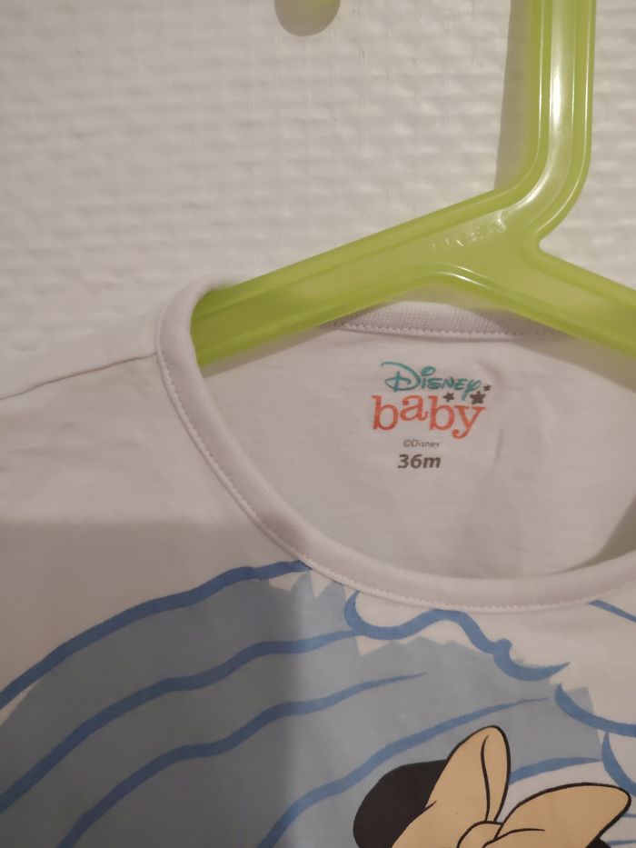 Joli ensemble Disney Minnie pour fille, taille 36 mois, composé d’un t-shirt blanc imprimé Minnie et d’un short fleuri.