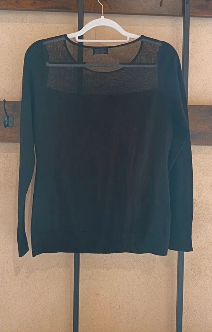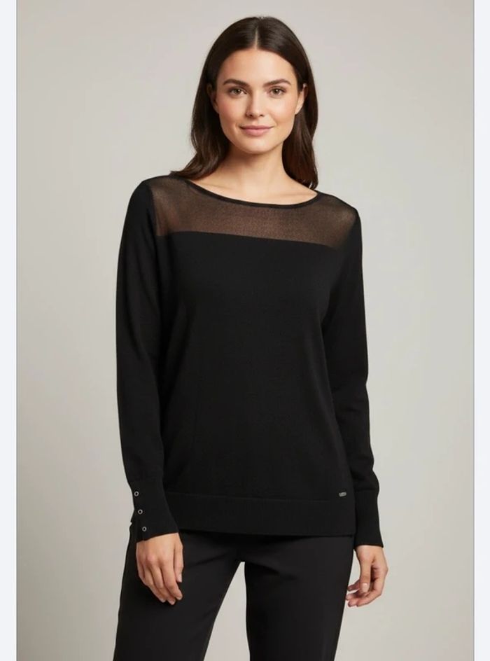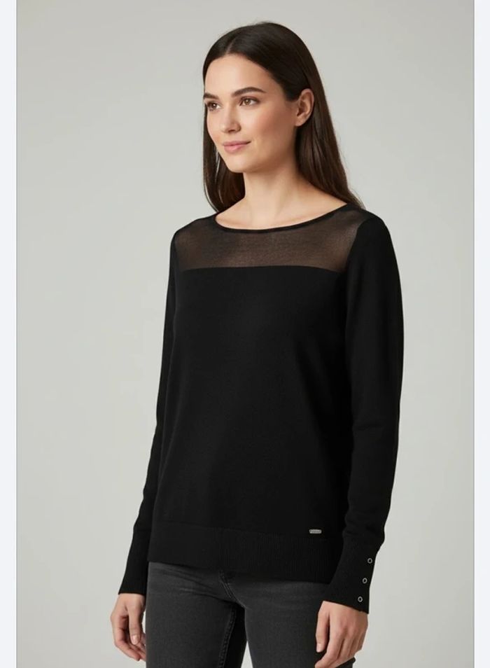 Détails : Haut transparent, finitions pailletées, maille légère.