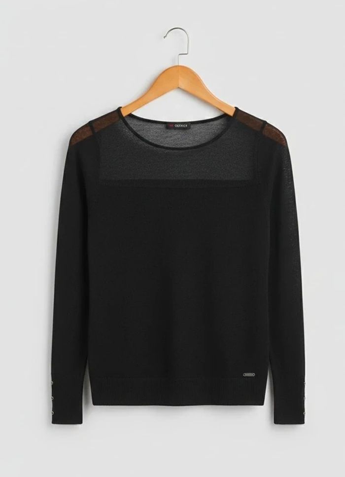 Le haut du pull d'une élégance transparence parsemée de paillettes pour un effet scintillant garanti.