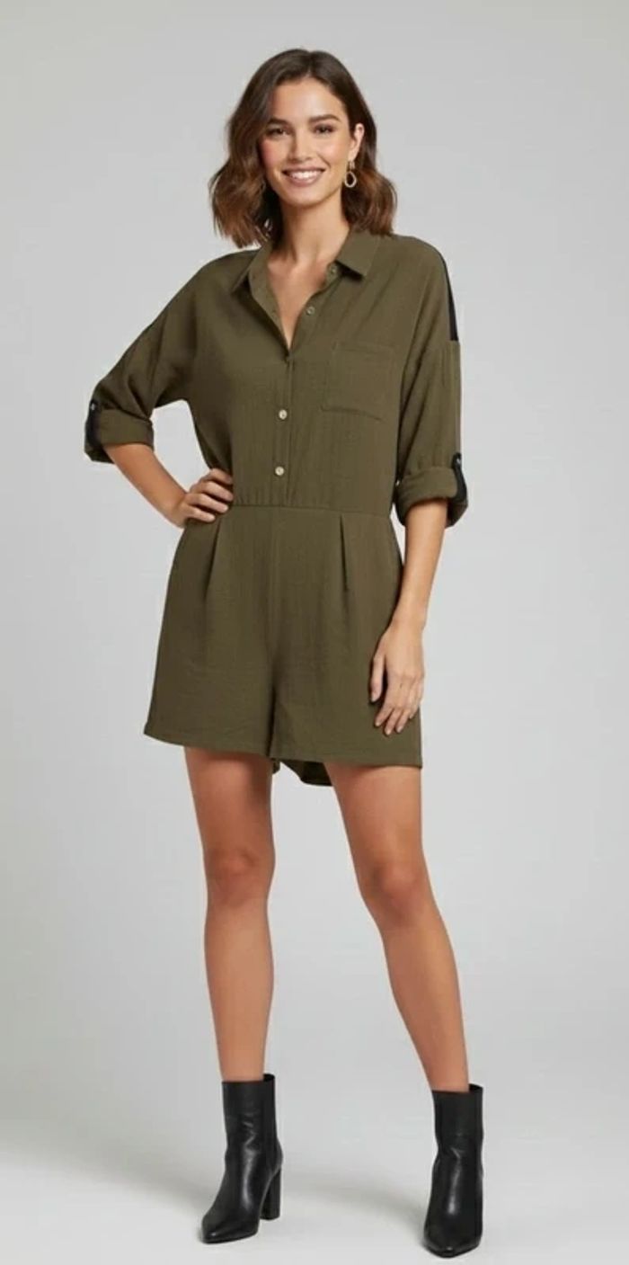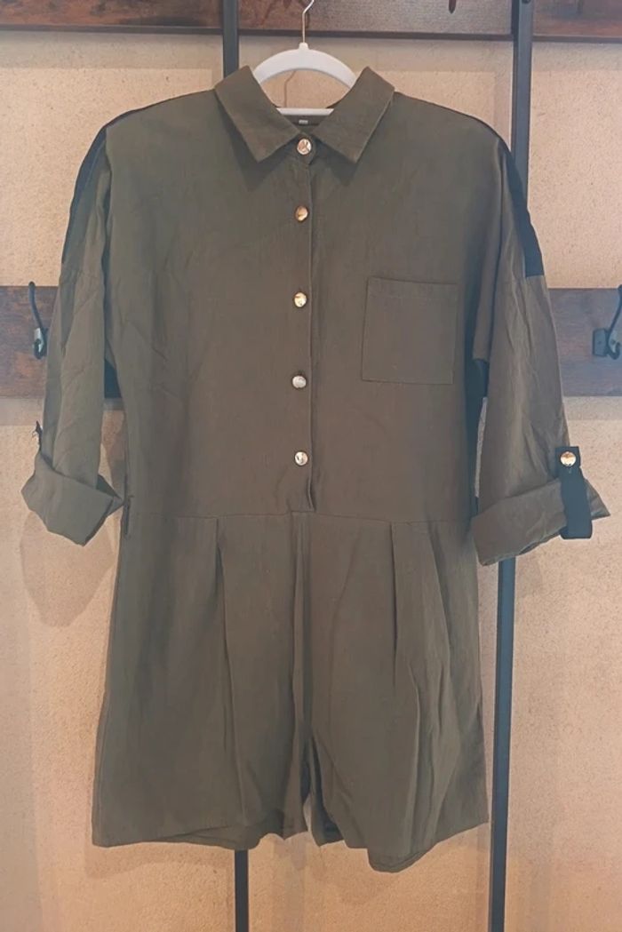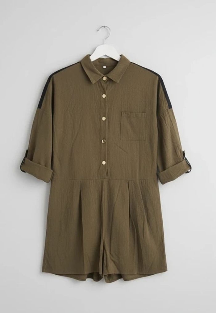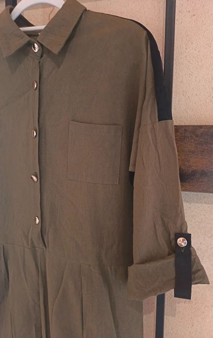 Détails : Coupe chemisier avec boutons à l'avant, manches retroussables et taille marquée. Idéale avec des bottines ou des sandales !