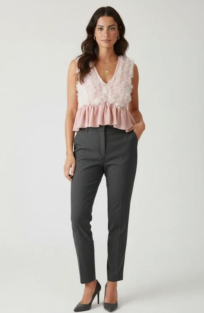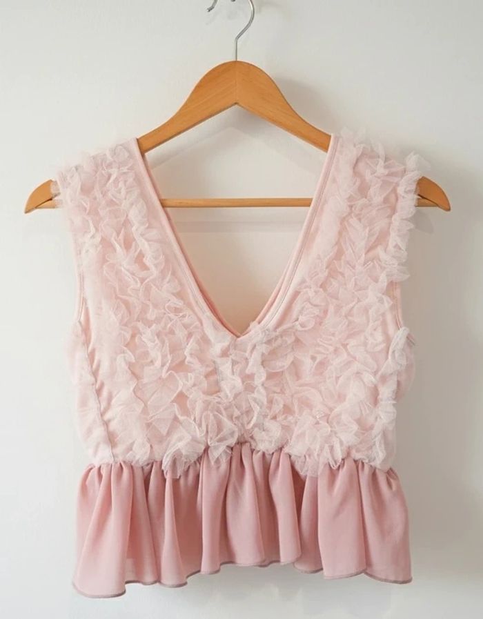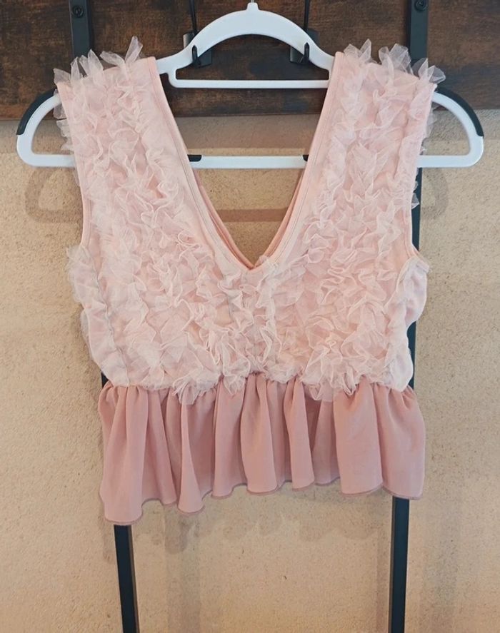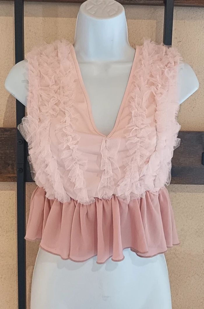 Jolie haut court sans manches, parfait pour un look romantique ou festif.