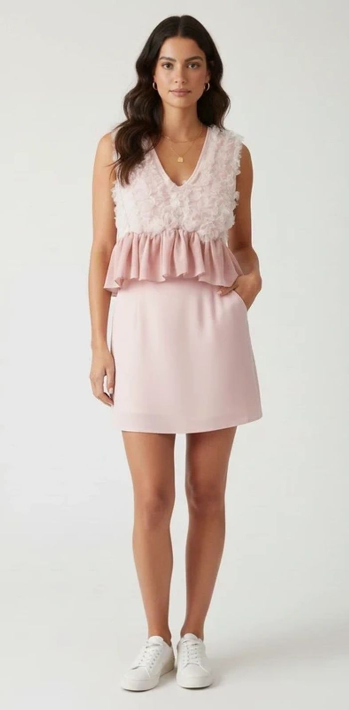 Détails : Travail de volants en tulle sur le devant et le derrière et bas évasé fluide.
