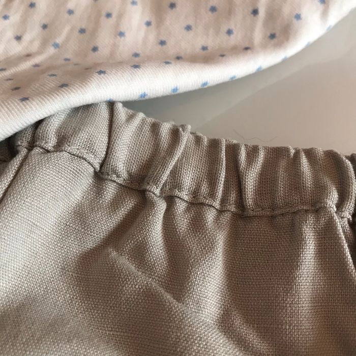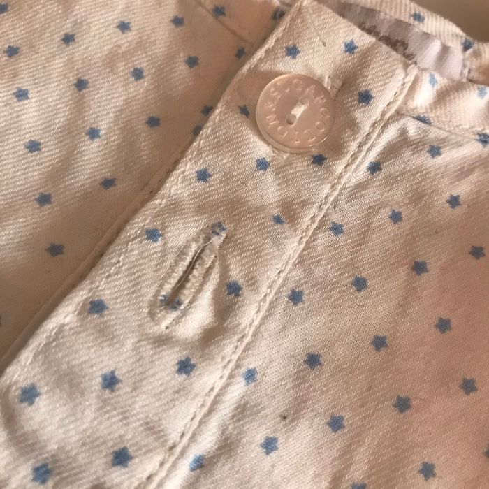Ensemble coton taille 1 mois composé : - d’une chemise col mao blanche motifs étoiles bleues, - et d’un bloomer beige. Marque SUGAR COTTON