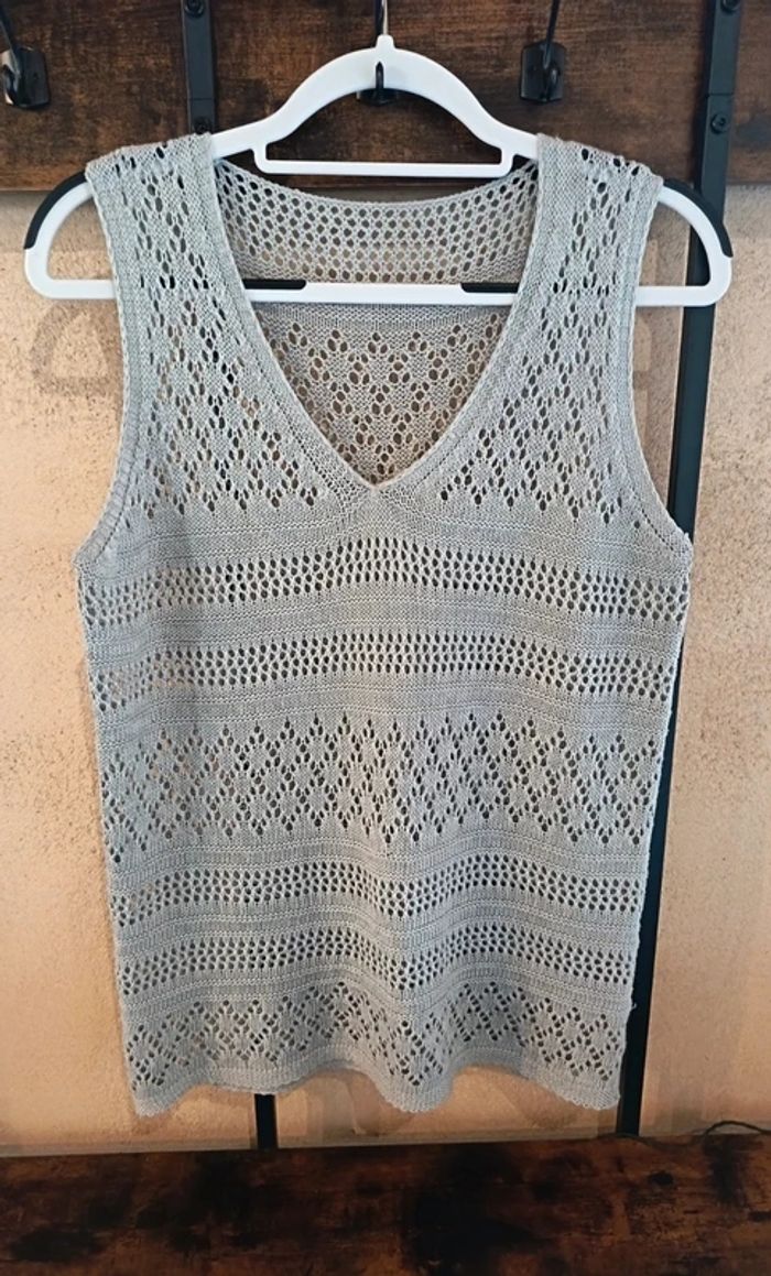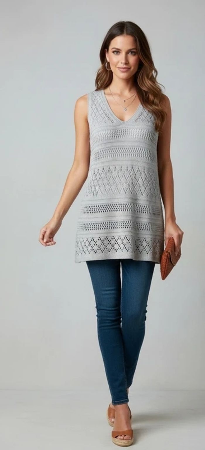 Détails : Jolis jeux de points ajourés et motifs géométriques (style crochet/tricot). Coupe fluide et confortable.
