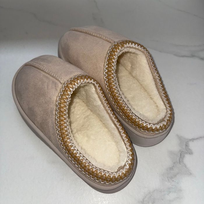 Mules confortables effet daim intérieur bien chaud fourré. Style UGG.