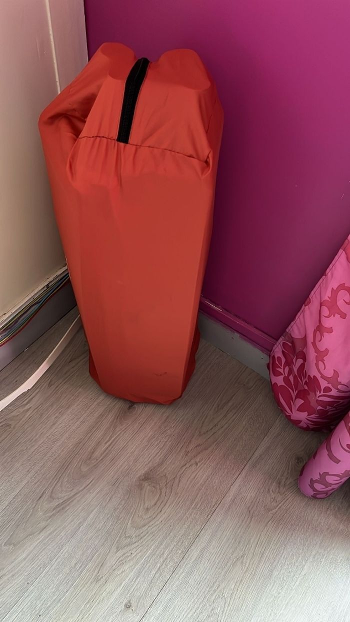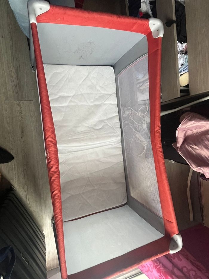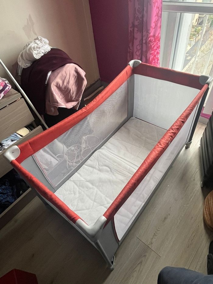 Lit parapluie gris / orangé Trottine avec Matelas pliant & sac de transport inclus