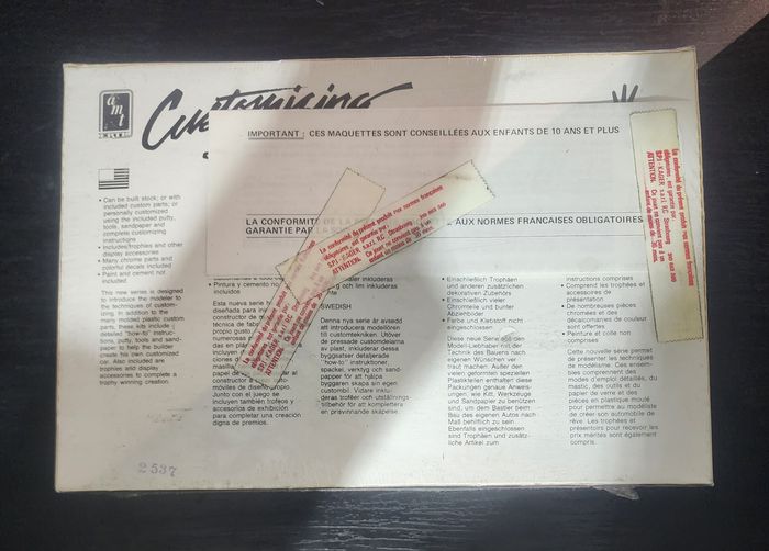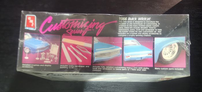 bonjour, je vends cette maquette amt ertl 1/25 de la 1966 buick wildcat, issue de la collection customizing series. c'est un modèle 3-en-1 qui permet de la construire en version stock, custom, ou advanced custom. elle comprend : pièces pour la voiture des pièces custom une notice détaillée même des outils comme du mastic, du papier de verre et des outils de construction (kit customizing series). la boîte est encore sous blister / scellée (plastique d'origine), ce qui est rare pour une pièce de collection. le numéro sur le code-barres est #06832 (visible sur la photo). quelques traces d'usure légères sur la boîte
