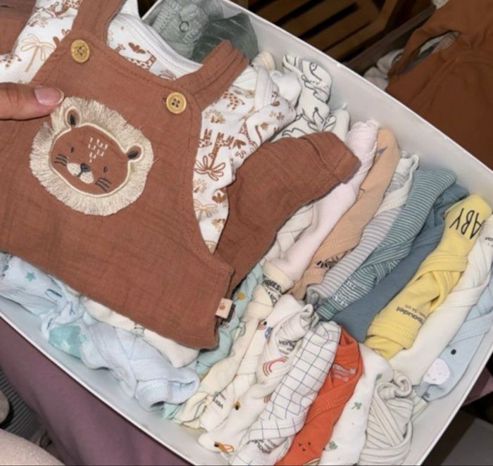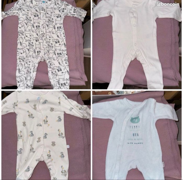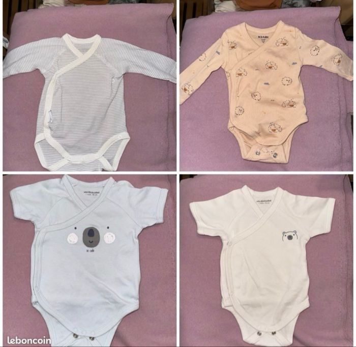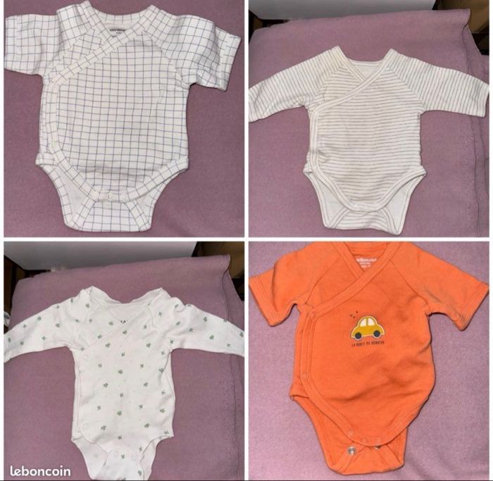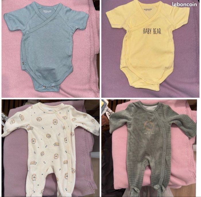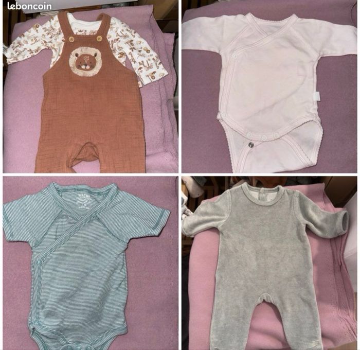 Voici un lot de vêtements taille naissance et 1 mois, marque principalement kiabi et verbaudet.