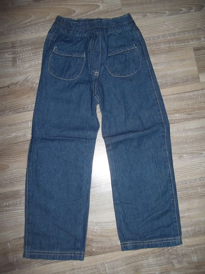 Pantalon confort, sans ouverture, en toile légère aspect jean 100 % coton. Taille élastiquée, fausse braguette, 2 petites poches devant, jambes larges. Entrejambe 42 cm, hauteur totale sur côté 61 cm, largeur min taille 22 cm, bas jambes 15 cm.