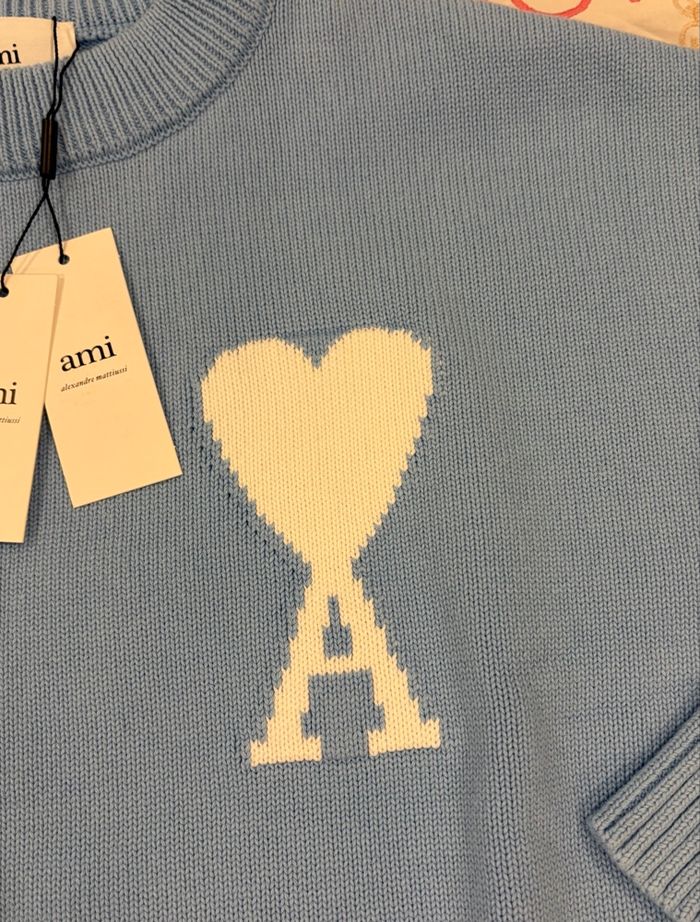 Pull iconique AMI Paris avec le célèbre logo cœur.