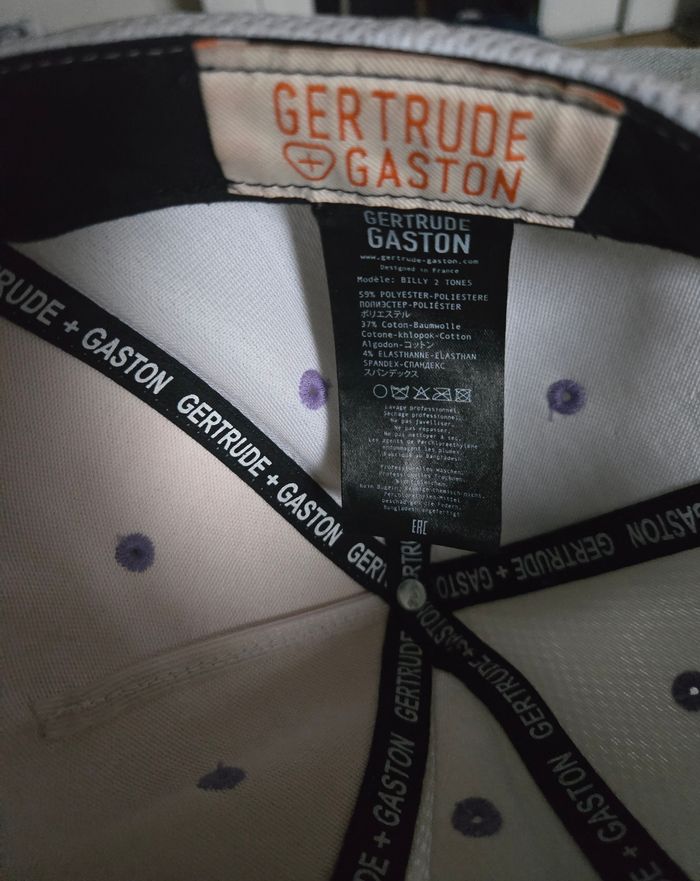 Je vends cette casquette Gertrude Gaston en coton de couleur rose pale/lavande/lilas.