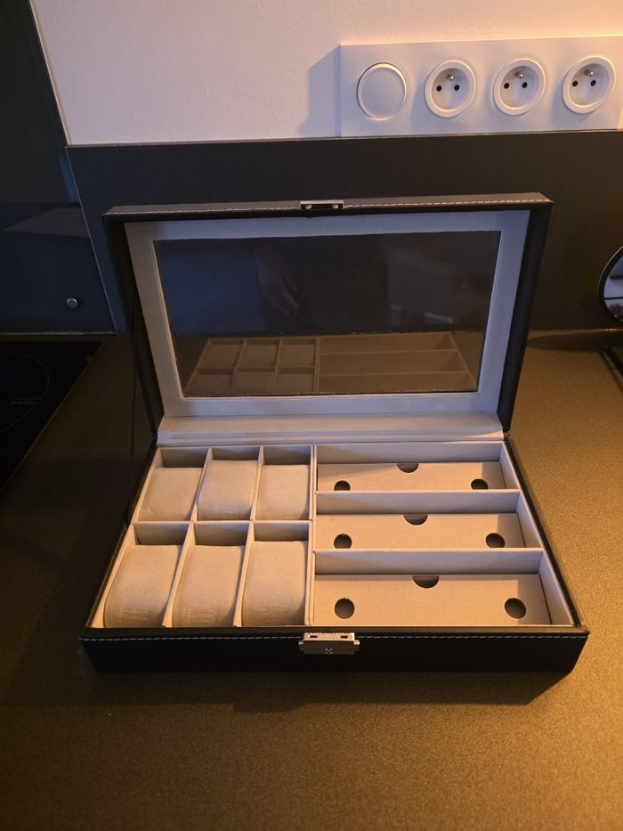 Boîte à bijoux en cuir 6 montres et 3 paires de lunettes - NEUF