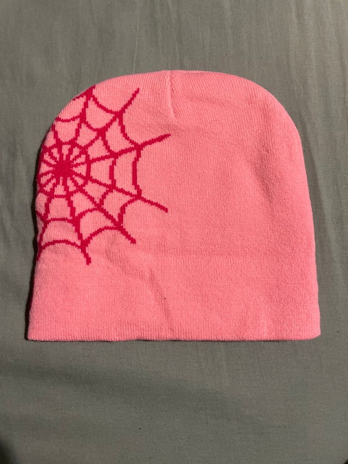 Couleur rose avec logo blanc brodé, finitions propres.