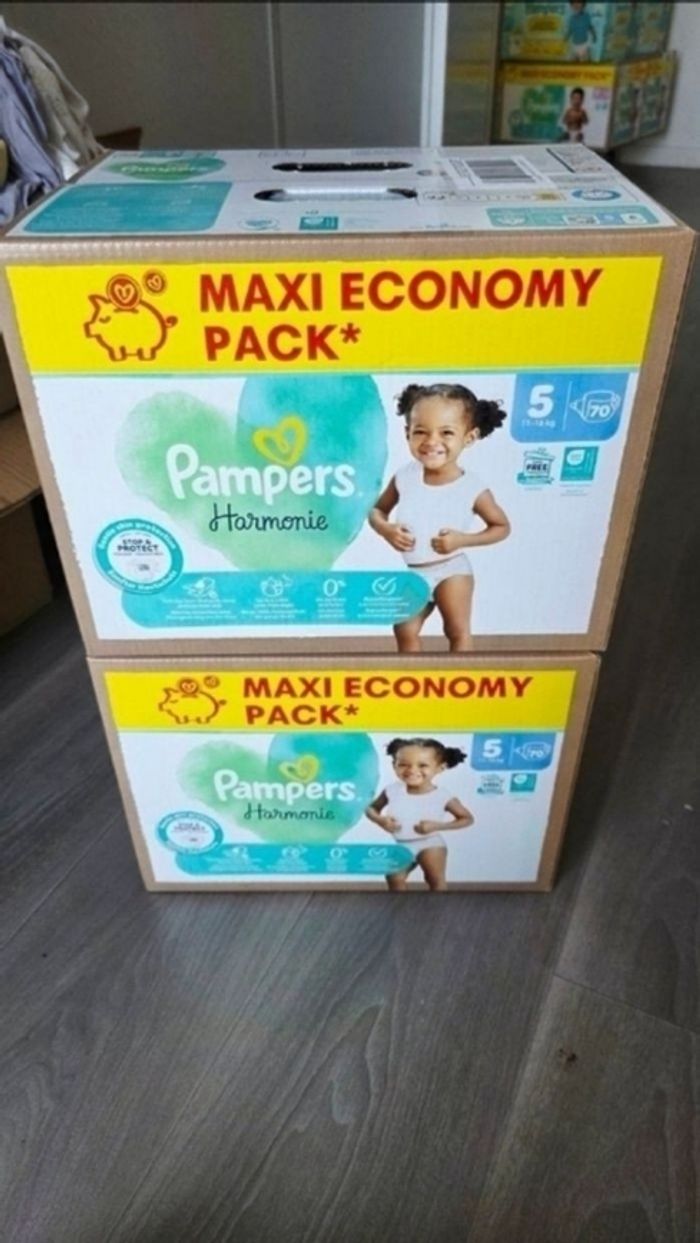 2 Cartons de couches Pampers Harmonie taille 5 Neuf jamais ouvert envoi rapide et soigné. 140 couches en tout