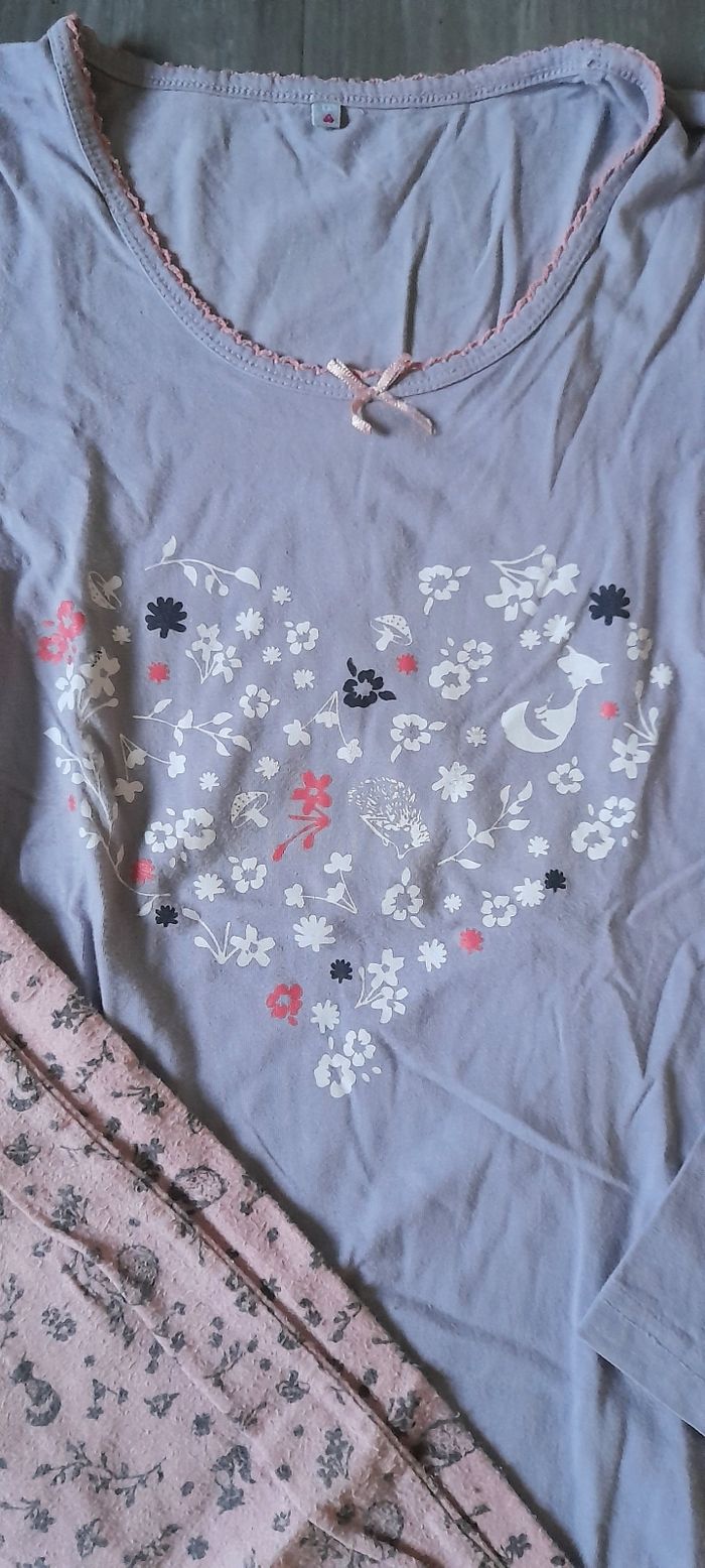 En parfait état. Haut lila manches longues en jersey de coton, pantalon rose en flanelle taille elastiquée. Taille 34/36