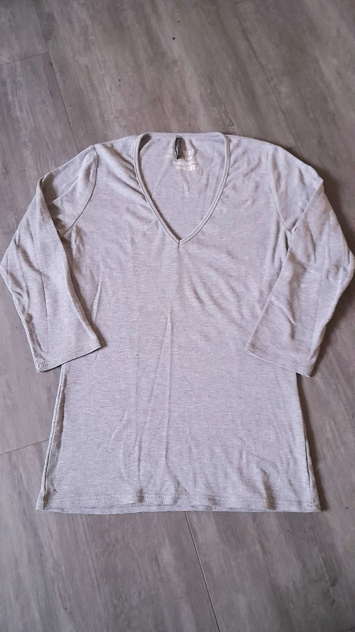 Col V, manches 3/4, gris, 100% coton épais, taille S
