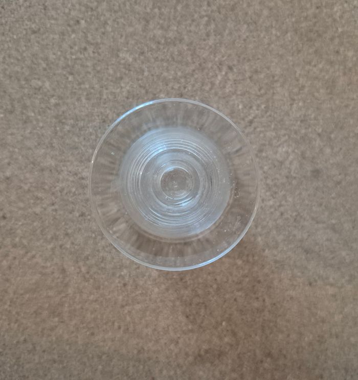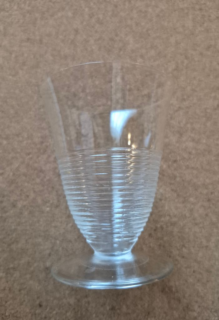 Lot de 2 verres à pied en cristal Verres à digestif Vintage, motif anneaux en relief Hauteur 7.5 cm., diamètre 5.6 cm.
