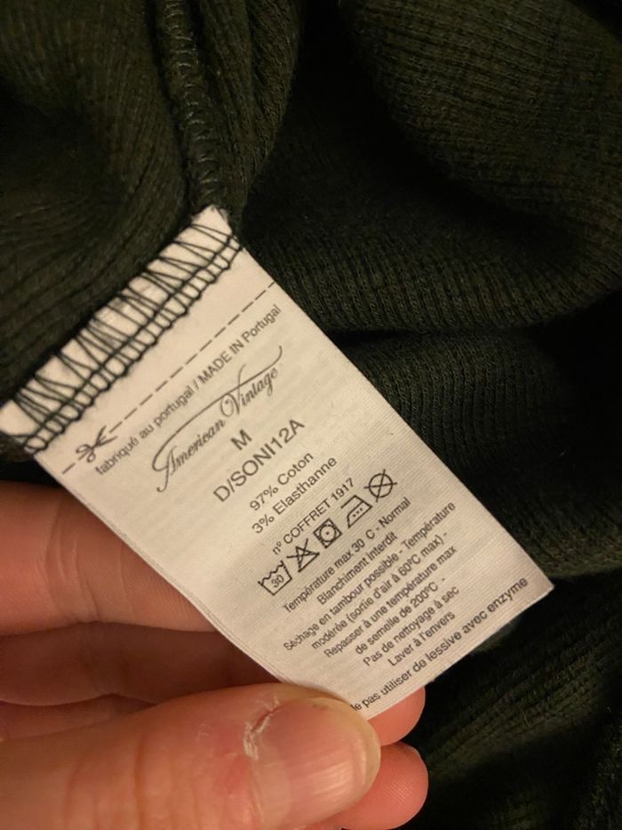 Combinaison American Vintage, taille M, couleur kaki. En coton doux et confortable, parfaite pour un style casual et élégant.