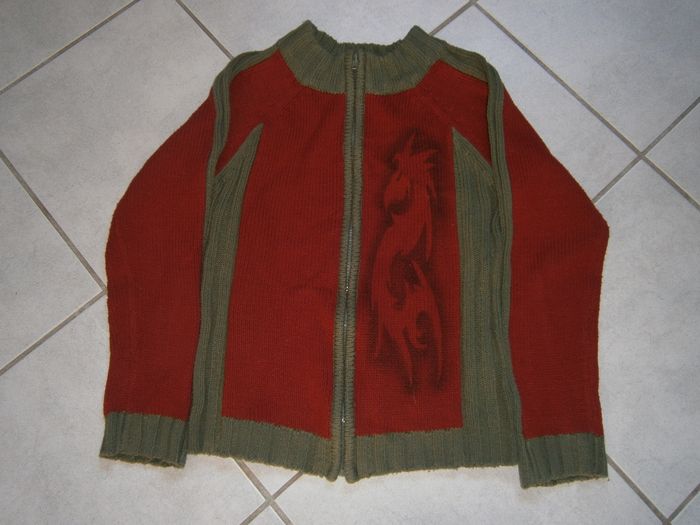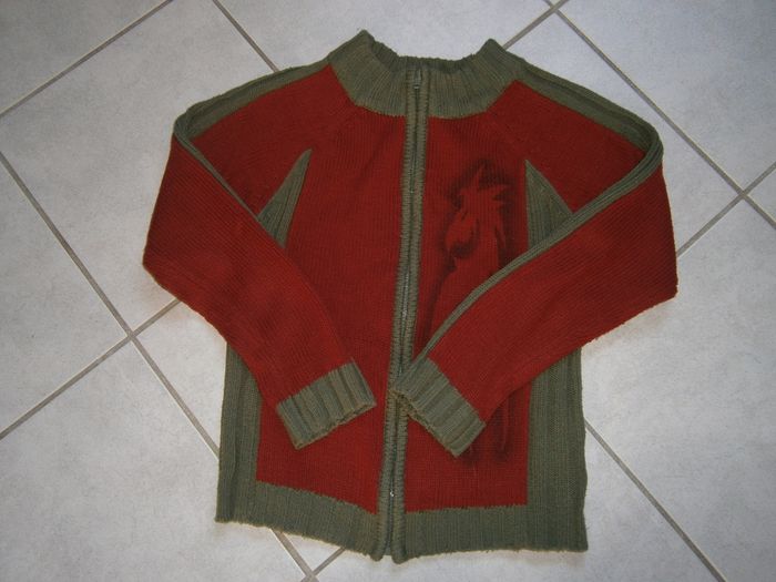 Gilet rouge/kaki motif "Dragon" 10 ans